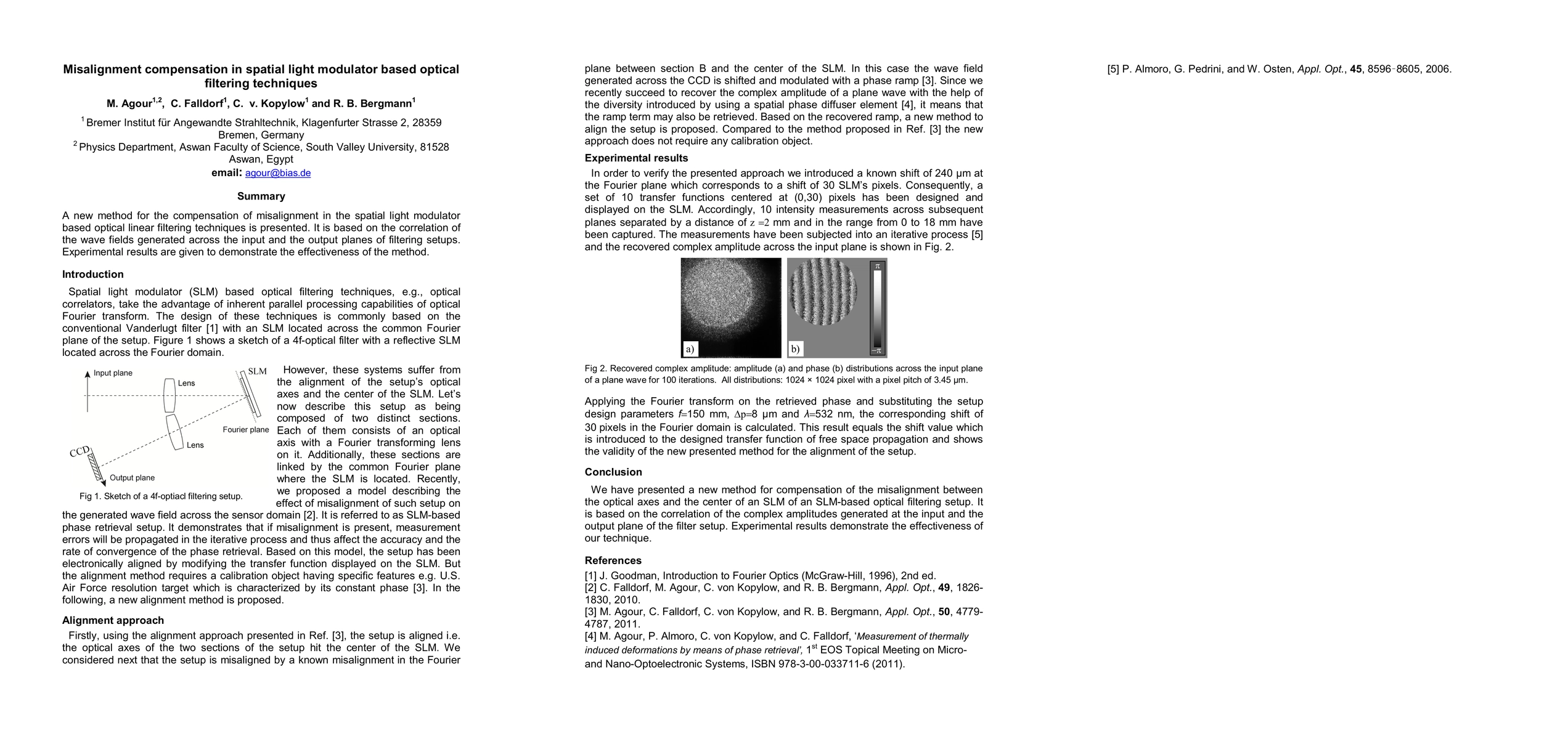 This paper introduces a novel misalignment compensation technique for spatial light modulator-based optical filtering methods, leveraging wave field correlation between input and output planes, validated by experimental results.