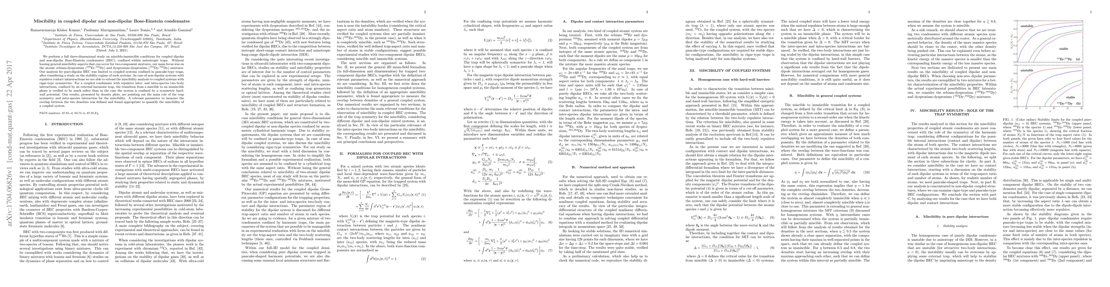 This paper investigates the miscibility conditions of coupled dipolar and non-dipolar Bose-Einstein condensates, focusing on erbium-dysprosium and dysprosium-dysprosium mixtures. It finds that the trap symmetry and inter-species interactions significantly influence the transition from miscible to immiscible phases, with softer transitions in harmonic traps compared to hard-wall potentials.