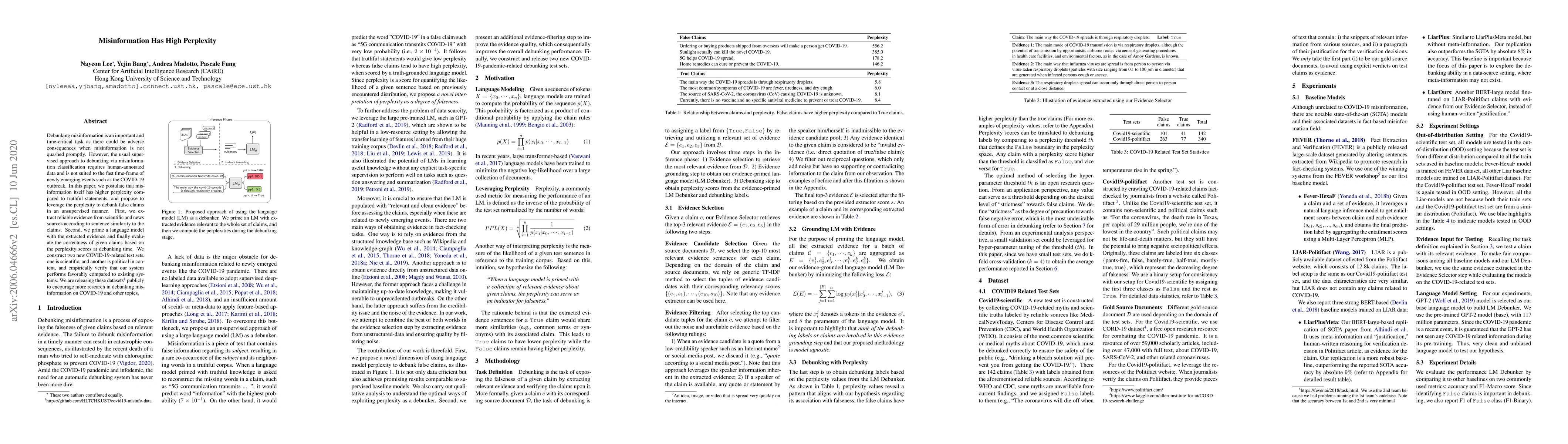 This paper proposes an unsupervised method to debunk misinformation by leveraging the higher perplexity of false claims compared to truthful statements. The approach extracts reliable evidence and uses perplexity scores from a primed language model to evaluate the correctness of claims, demonstrating favorable performance on newly constructed COVID-19-related test sets.