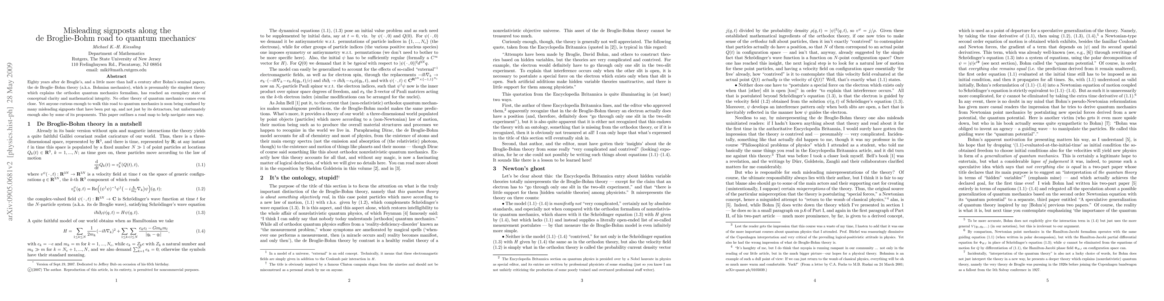 This paper clarifies the de Broglie-Bohm theory, highlighting its conceptual and mathematical clarity, while also addressing the misleading signposts that confuse both critics and proponents navigating its path to quantum mechanics. It aims to provide a clearer roadmap for understanding this theory.