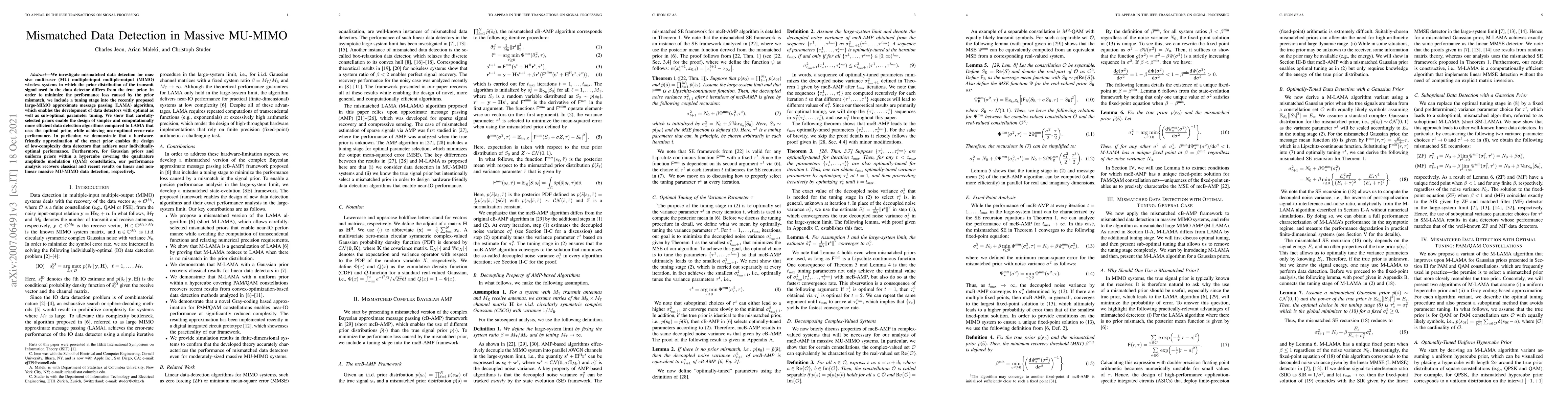 This paper explores mismatched data detection in massive MU-MIMO systems, proposing a tuning stage in the LAMA algorithm to minimize performance loss from prior mismatch. It demonstrates that simpler, low-complexity detectors can achieve near-optimal performance using carefully selected priors.