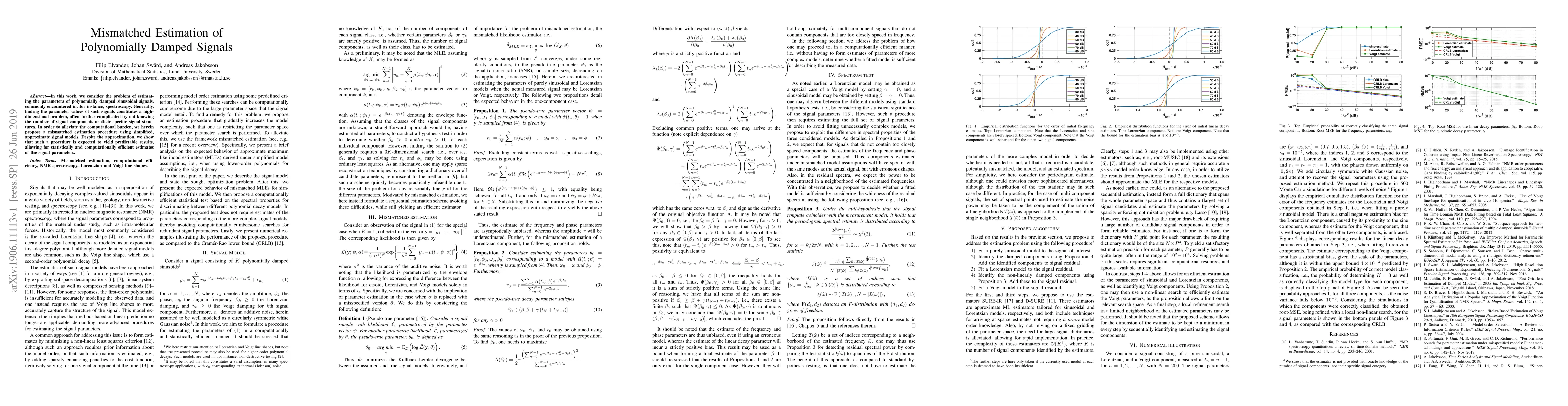 In this work, we consider the problem of estimating the parameters of polynomially damped sinusoidal signals, commonly encountered in, for instance, spectroscopy. Generally, finding the parameter values of such signals constitutes a high-dimensional problem, often further complicated by not knowing the number of signal components or their specific signal structures. In order to alleviate the computational burden, we herein propose a mismatched estimation procedure using simplified, approximate signal models. Despite the approximation, we show that such a procedure is expected to yield predictable results, allowing for statistically and computationally efficient estimates of the signal parameters.