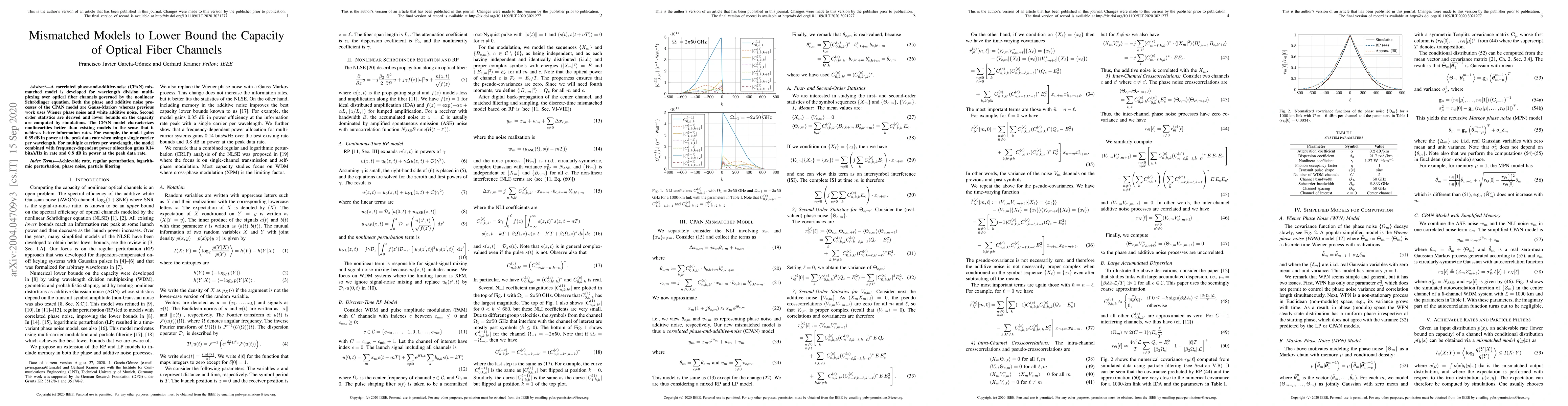 A correlated phase-and-additive-noise (CPAN) mismatched model is developed for wavelength division multiplexing over optical fiber channels governed by the nonlinear Schr\"odinger equation. Both the phase and additive noise processes of the CPAN model are Gauss-Markov whereas previous work uses Wiener phase noise and white additive noise. Second order statistics are derived and lower bounds on the capacity are computed by simulations. The CPAN model characterizes nonlinearities better than existing models in the sense that it achieves better information rates. For example, the model gains 0.35 dB in power at the peak data rate when using a single carrier per wavelength. For multiple carriers per wavelength, the model combined with frequency-dependent power allocation gains 0.14 bits/s/Hz in rate and 0.8 dB in power at the peak data rate.