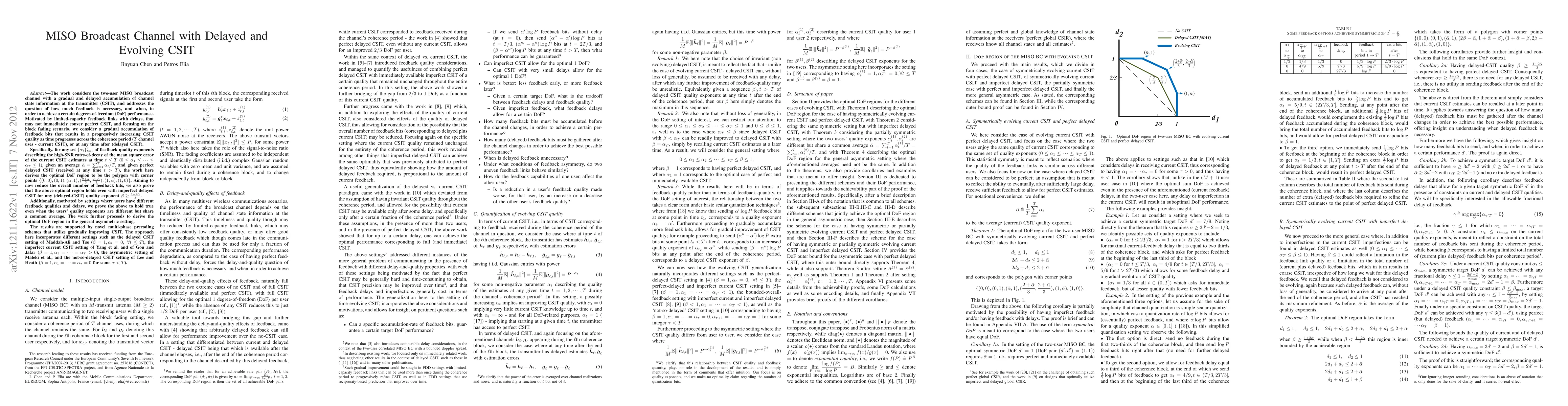 This paper investigates the two-user MISO broadcast channel with evolving and delayed channel state information at the transmitter (CSIT), determining optimal degrees-of-freedom (DoF) performance under various feedback quality conditions. It proposes novel precoding schemes that leverage progressively improving CSIT and addresses asymmetric and imperfect delayed CSIT scenarios.