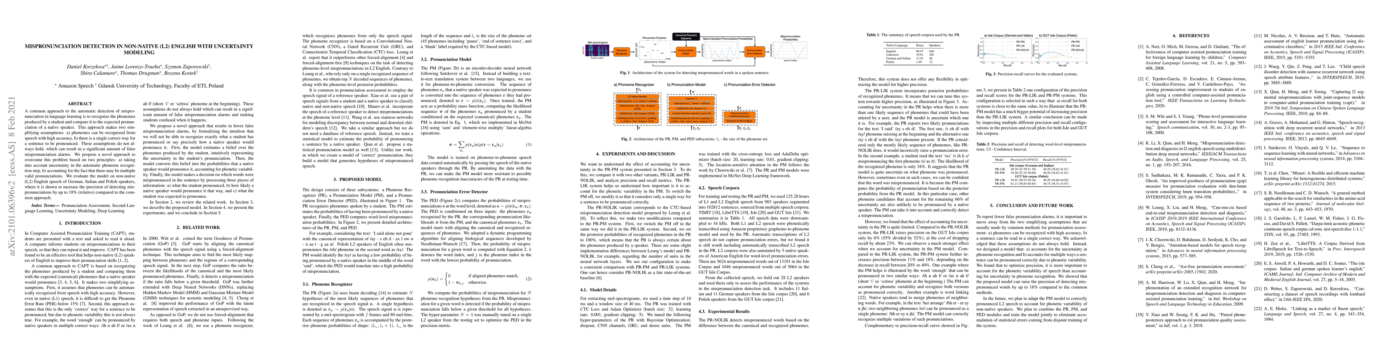 This paper proposes a novel method for detecting mispronunciations in non-native English speech by incorporating uncertainty in phoneme recognition and acknowledging multiple valid pronunciations. The approach improves mispronunciation detection precision by up to 18% compared to traditional methods.