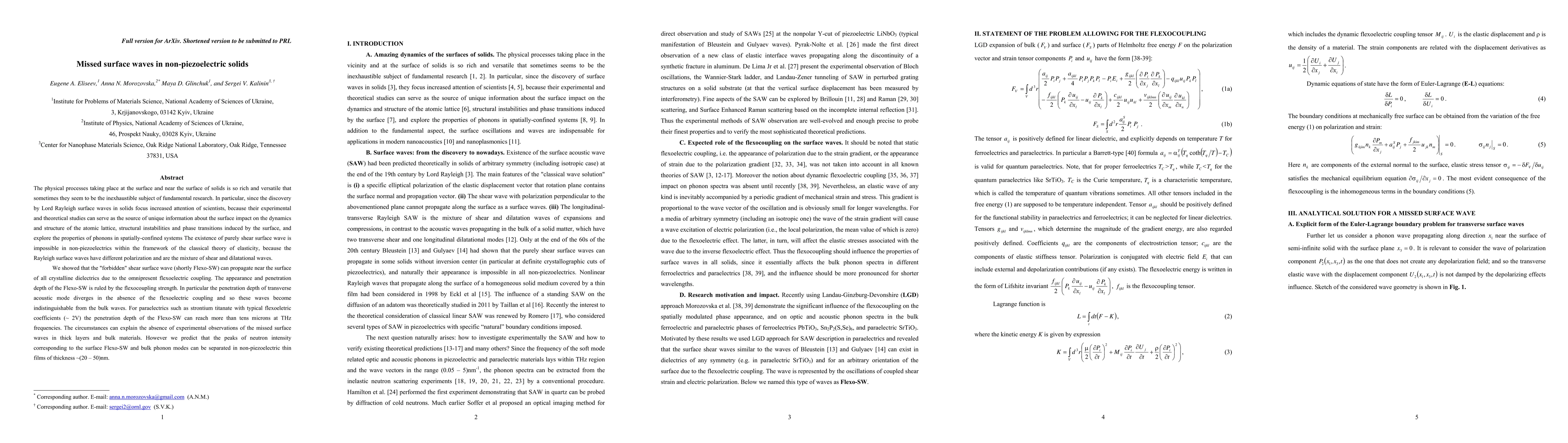 The physical processes taking place at the surface and near the surface of solids is so rich and versatile that sometimes they seem to be the inexhaustible subject of fundamental research. In particular, since the discovery by Lord Rayleigh surface waves in solids focus increased attention of scientists, because their experimental and theoretical studies can serve as the source of unique information about the surface impact on the dynamics and structure of the atomic lattice, structural instabilities and phase transitions induced by the surface, and explore the properties of phonons in spatially-confined systems The existence of purely shear surface wave is impossible in non-piezoelectrics within the framework of the classical theory of elasticity, because the Rayleigh surface waves have different polarization and are the mixture of shear and dilatational waves. We showed that the "forbidden" shear surface wave (shortly Flexo-SW) can propagate near the surface of all crystalline dielectrics due to the omnipresent flexoelectric coupling. The appearance and penetration depth of the Flexo-SW is ruled by the flexocoupling strength. In particular the penetration depth of transverse acoustic mode diverges in the absence of the flexoelectric coupling and so these waves become indistinguishable from the bulk waves. For paraelectrics such as strontium titanate with typical flexoeletric coefficients (~2V) the penetration depth of the Flexo-SW can reach more than tens microns at THz frequencies. The circumstances can explain the absence of experimental observations of the missed surface waves in thick layers and bulk materials. However we predict that the peaks of neutron intensity corresponding to the surface Flexo-SW and bulk phonon modes can be separated in non-piezoelectric thin films of thickness ~(20 - 50)nm.