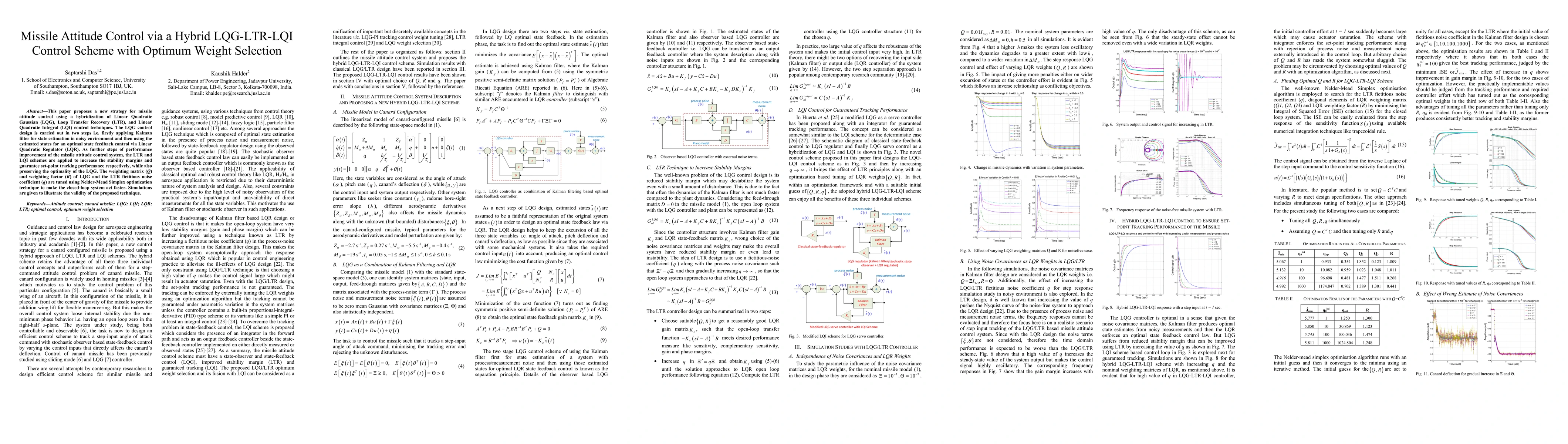 This paper introduces a hybrid LQG-LTR-LQI control scheme for missile attitude control, optimizing weight selection through Nelder-Mead Simplex optimization to enhance system performance and stability. Simulation results validate the proposed method's effectiveness.
