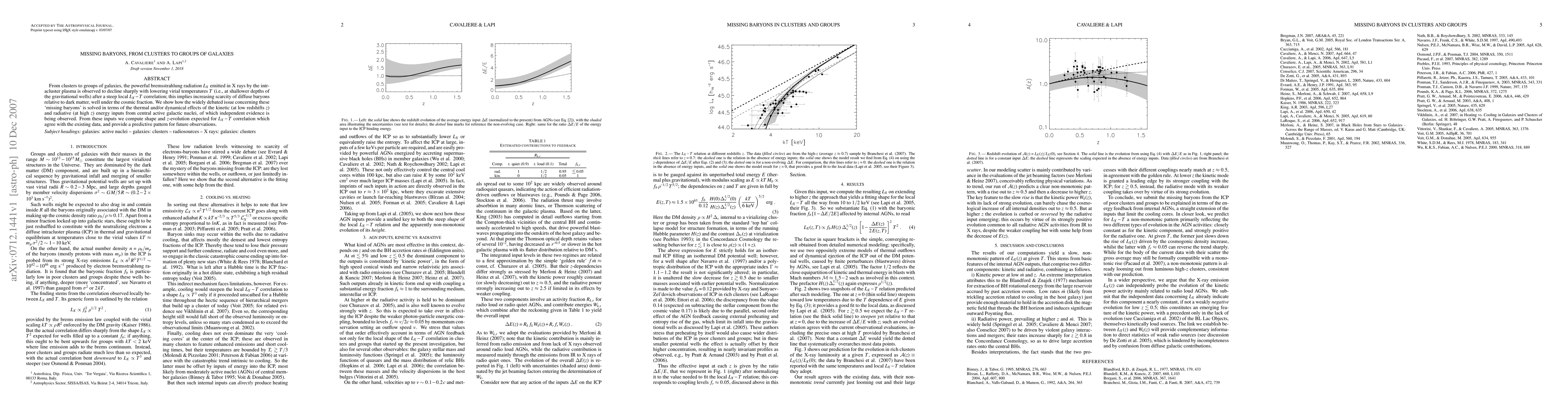 From clusters to groups of galaxies, the powerful bremsstrahlung radiation L_X emitted in X rays by the intracluster plasma is observed to decline sharply with lowering virial temperatures T (i.e., at shallower depths of the gravitational wells) after a steep local L_X-T correlation; this implies increasing scarcity of diffuse baryons relative to dark matter, well under the cosmic fraction. We show how the widely debated issue concerning these `missing baryons' is solved in terms of the thermal and/or dynamical effects of the kinetic (at low redshifts z) and radiative (at high z) energy inputs from central active galactic nuclei, of which independent evidence is being observed. From these inputs we compute shape and z-evolution expected for L_X-T correlation which agree with the existing data, and provide a predictive pattern for future observations.