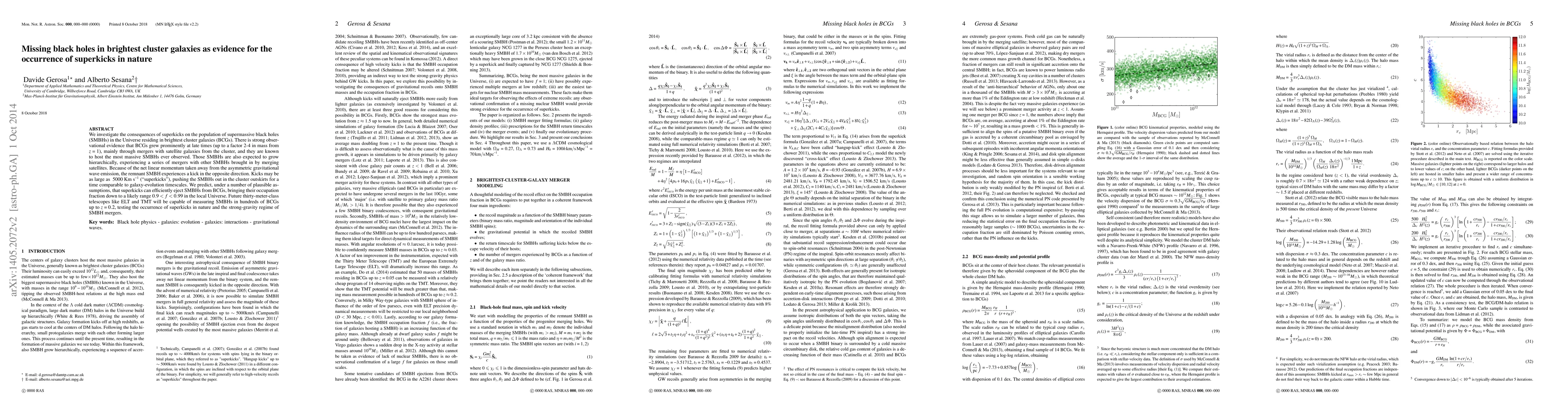 Research suggests that supermassive black holes in brightest cluster galaxies may be ejected due to 'superkicks' caused by gravitational wave emission, reducing their occupation fraction.