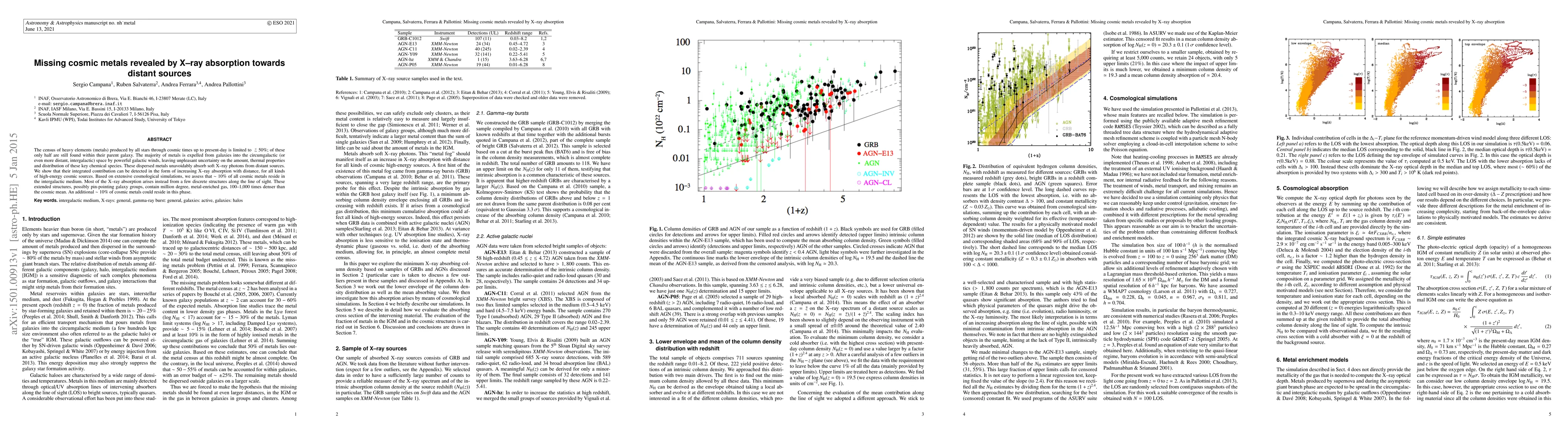 The census of heavy elements (metals) produced by all stars through cosmic times up to present-day is limited to ~50%; of these only half are still found within their parent galaxy. The majority of metals is expelled from galaxies into the circumgalactic (or even more distant, intergalactic) space by powerful galactic winds, leaving unpleasant uncertainty on the amount, thermal properties and distribution of these key chemical species. These dispersed metals unavoidably absorb soft X-ray photons from distant sources. We show that their integrated contribution can be detected in the form of increasing X-ray absorption with distance, for all kinds of high-energy cosmic sources. Based on extensive cosmological simulations, we assess that $\sim$ 10\% of all cosmic metals reside in the intergalactic medium. Most of the X-ray absorption arises instead from a few discrete structures along the line of sight. These extended structures, possibly pin-pointing galaxy groups, contain million degree, metal-enriched gas, 100-1,000 times denser than the cosmic mean. An additional ~10% of cosmic metals could reside in this phase.