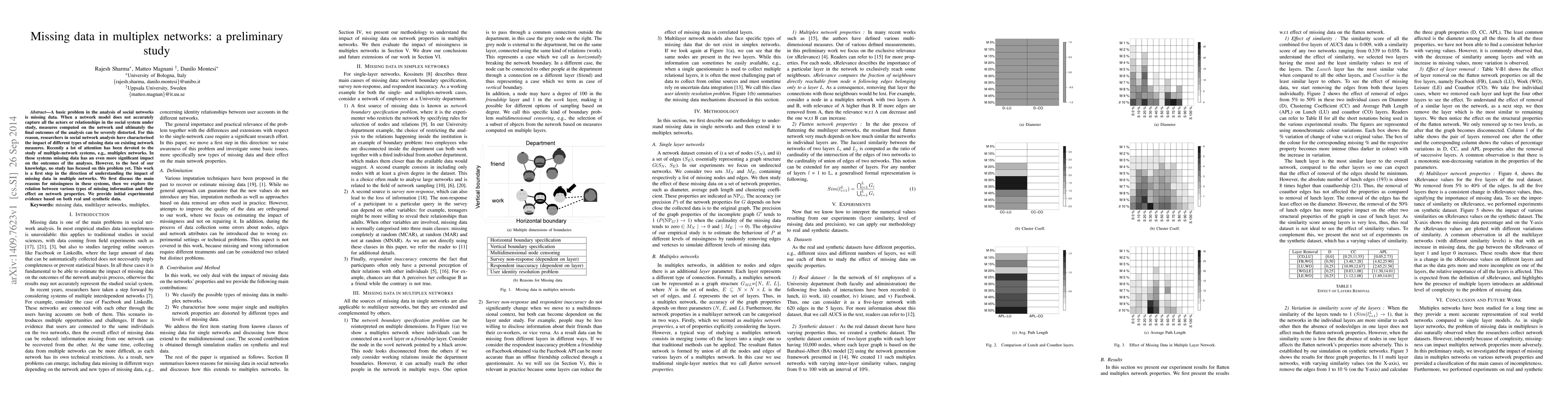 A basic problem in the analysis of social networks is missing data. When a network model does not accurately capture all the actors or relationships in the social system under study, measures computed on the network and ultimately the final outcomes of the analysis can be severely distorted. For this reason, researchers in social network analysis have characterised the impact of different types of missing data on existing network measures. Recently a lot of attention has been devoted to the study of multiple-network systems, e.g., multiplex networks. In these systems missing data has an even more significant impact on the outcomes of the analyses. However, to the best of our knowledge, no study has focused on this problem yet. This work is a first step in the direction of understanding the impact of missing data in multiple networks. We first discuss the main reasons for missingness in these systems, then we explore the relation between various types of missing information and their effect on network properties. We provide initial experimental evidence based on both real and synthetic data.