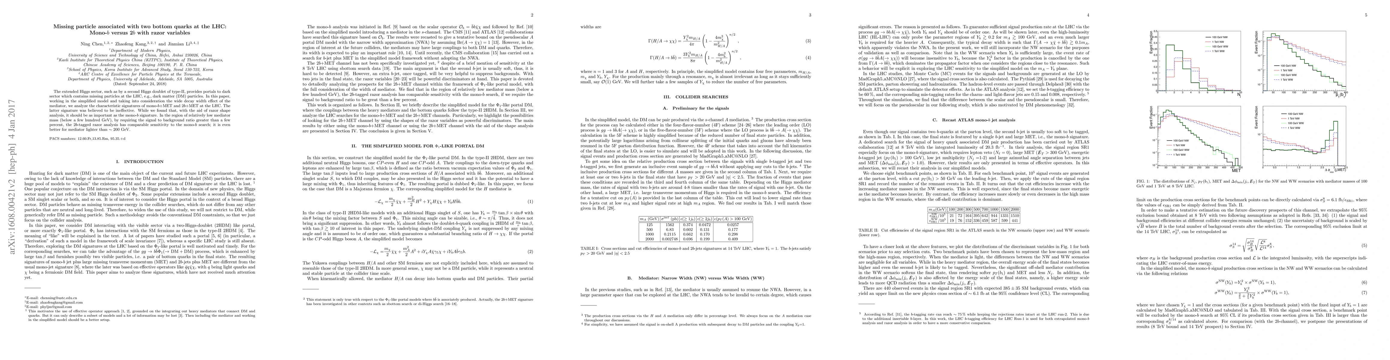 The extended Higgs sector, such as by a second Higgs doublet of type-II, provides portals to dark sector which contains missing particles at the LHC, e.g., dark matter (DM) particles. In this paper, working in the simplified model and taking into consideration the wide decay width effect of the mediator, we analyze the characteristic signatures of mono-$b$+MET and 2$b$+MET at the LHC. The latter signature was believed to be ineffective, while we found that, with the aid of razor shape analysis, it should be as important as the mono-$b$ signature. In the region of relatively low mediator mass (below a few hundred GeV), by requiring the signal to background ratio greater than a few percent, the 2$b$-tagged razor analysis has comparable sensitivity to the mono-$b$ search; it is even better for mediator lighter than $\sim 200$ GeV.