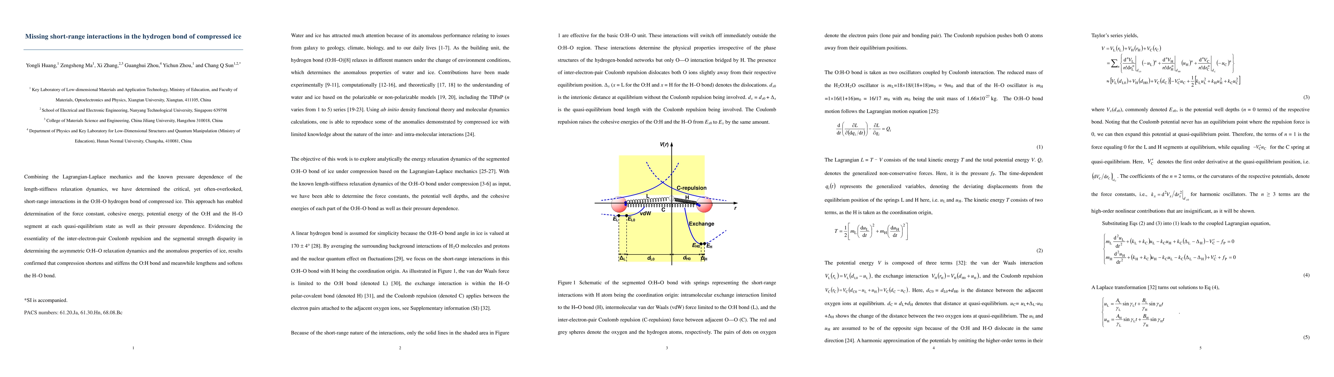 The research combines Lagrangian-Laplace mechanics with the pressure dependence of length-stiffness relaxation dynamics to determine short-range interactions in the hydrogen bond of compressed ice.