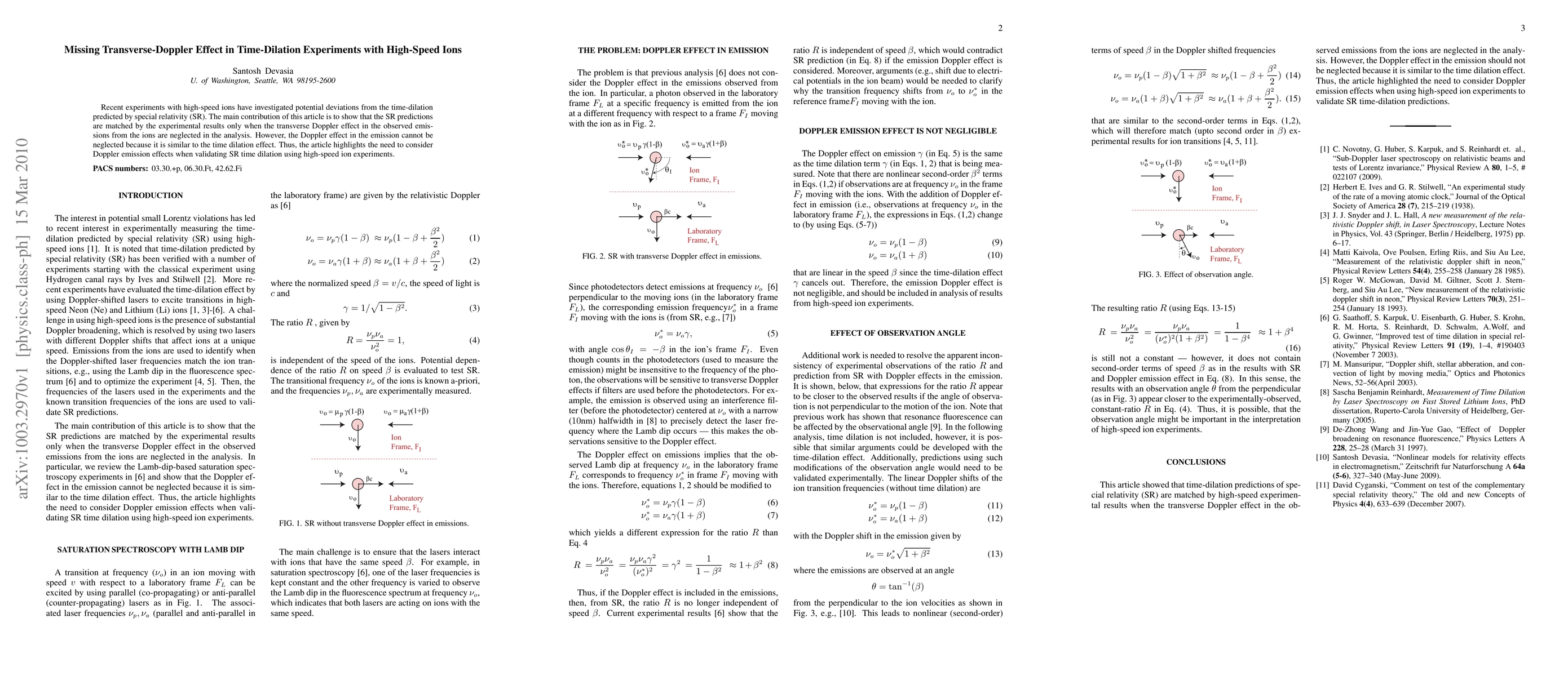 This paper reveals that special relativity's time-dilation predictions align with high-speed ion experiments only if the transverse Doppler effect is ignored. It emphasizes the necessity of accounting for Doppler emission effects to accurately validate time dilation in such experiments.