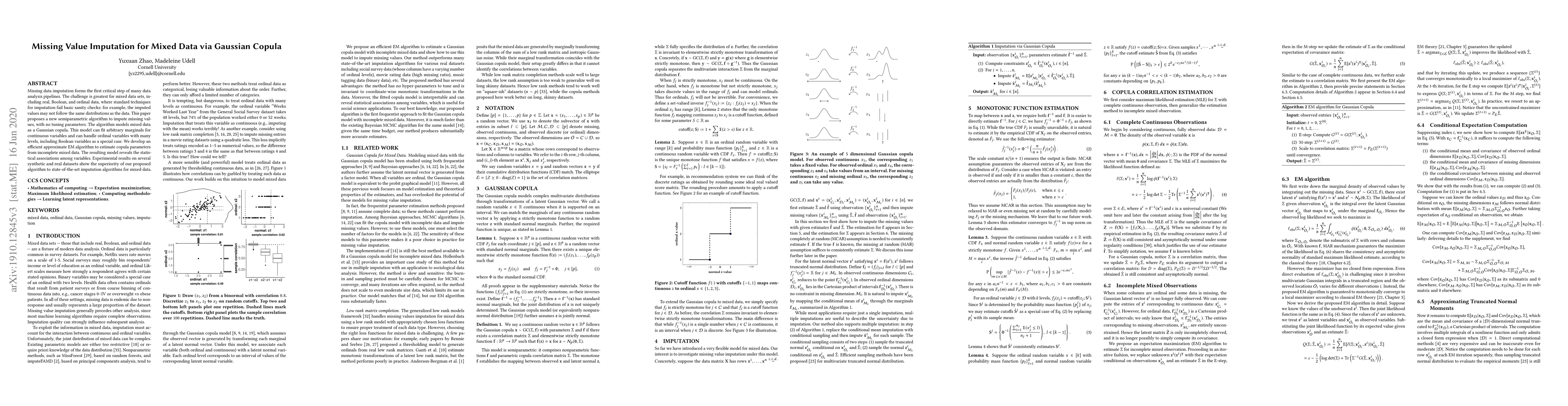 This paper introduces a semiparametric algorithm for missing value imputation in mixed data sets, employing a Gaussian copula model to accurately fit arbitrary marginal distributions and handle ordinal variables. The proposed method outperforms existing techniques, as demonstrated through experiments on synthetic and real datasets.