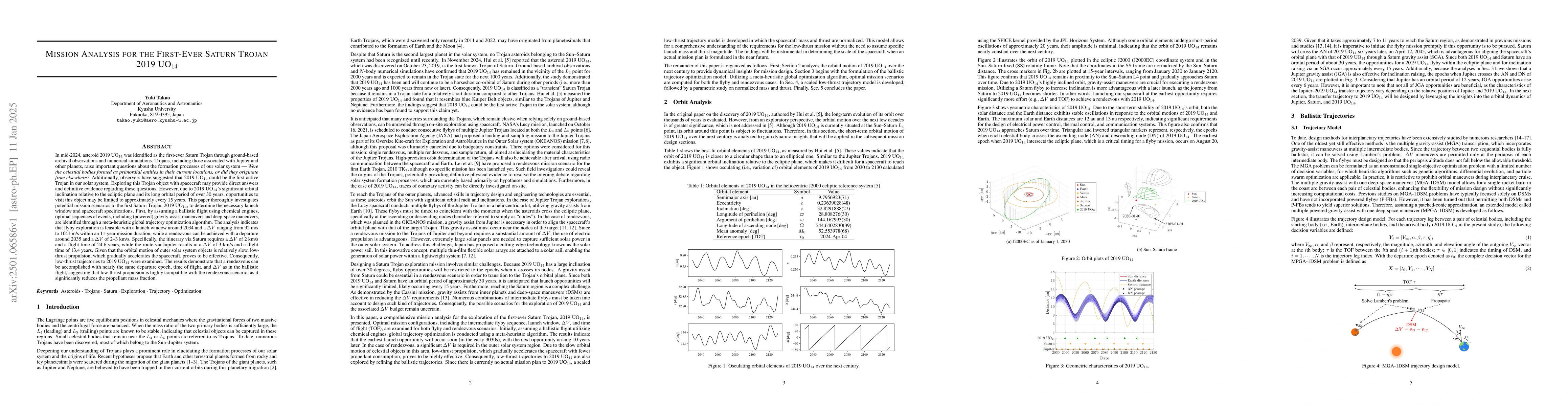This paper explores mission scenarios for a spacecraft to explore Saturn's first Trojan asteroid, 2019 UO$_{14}$. It identifies optimal launch windows around 2034-2035, and finds that a rendezvous mission using low-thrust propulsion is feasible, requiring $\Delta V$ of 2-3 km/s and flight times of 13.4-24.6 years.