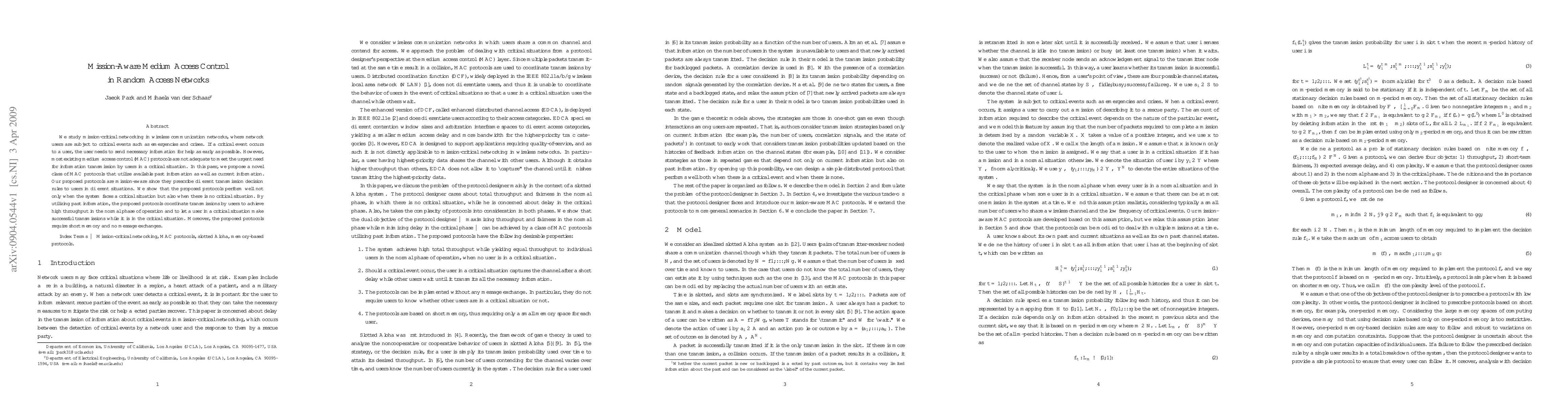 We study mission-critical networking in wireless communication networks, where network users are subject to critical events such as emergencies and crises. If a critical event occurs to a user, the user needs to send necessary information for help as early as possible. However, most existing medium access control (MAC) protocols are not adequate to meet the urgent need for information transmission by users in a critical situation. In this paer, we propose a novel class of MAC protocols that utilize available past information as well as current information. Our proposed protocols are mission-aware since they prescribe different transmission decision rules to users in different situations. We show that the proposed protocols perform well not only when the system faces a critical situation but also when there is no critical situation. By utilizing past information, the proposed protocols coordinate transmissions by users to achieve high throughput in the normal phase of operation and to let a user in a critical situation make successful transmissions while it is in the critical situation. Moreover, the proposed protocols require short memory and no message exchanges.
