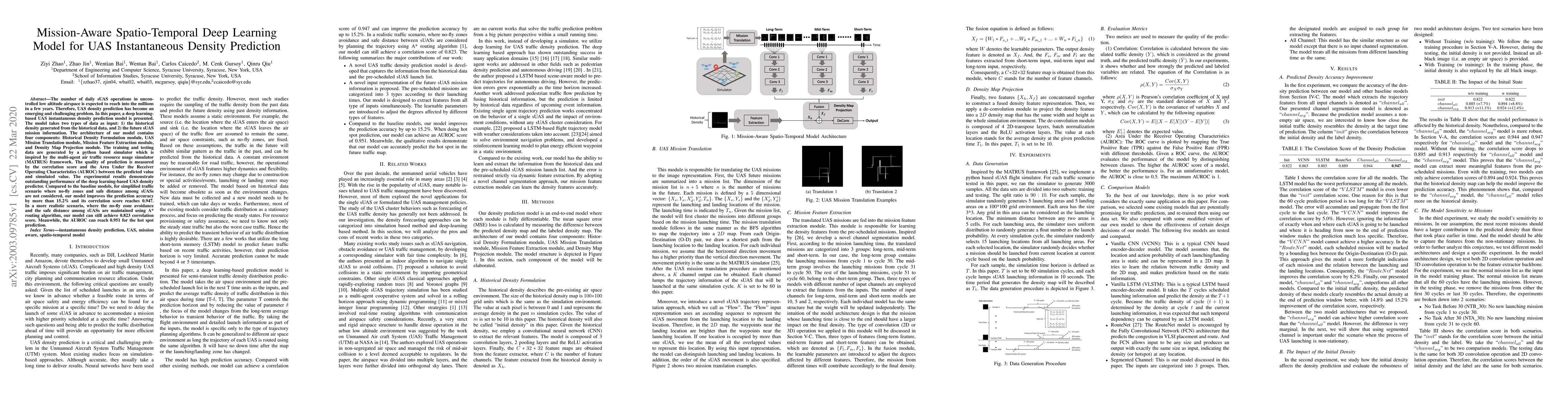 This paper presents a deep learning model for predicting the instantaneous density of unmanned aerial systems (UAS) in low altitude airspace, incorporating historical density data and future mission information. The model achieves superior prediction accuracy, improving by over 15.2% compared to baseline models, with a correlation score of 0.947 and AUROC of 0.951 in realistic scenarios.