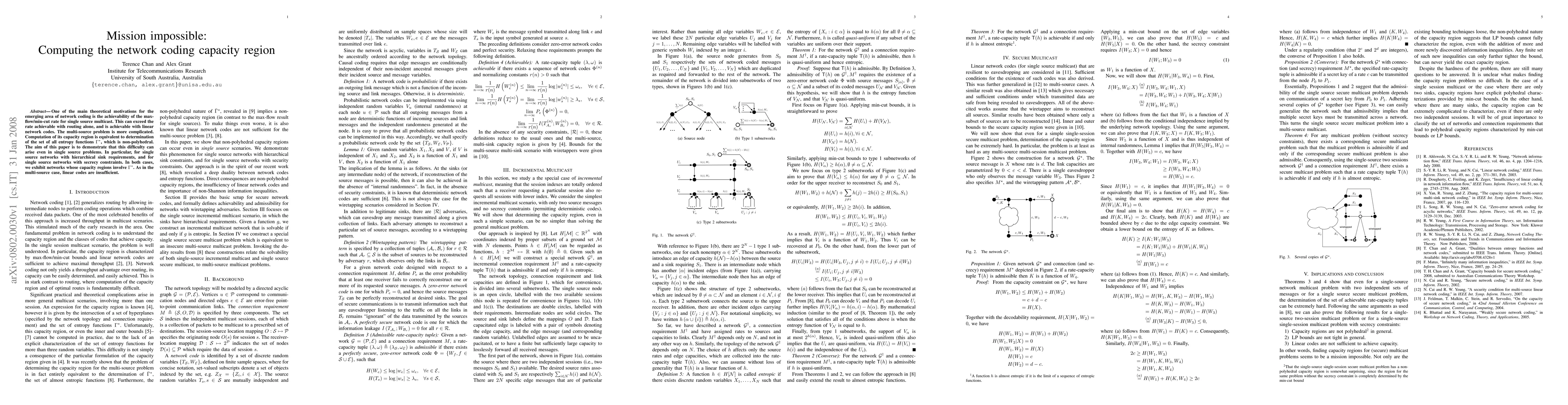 This paper explores the complexity of computing network coding capacity regions, particularly for single source networks with hierarchical sink requirements or secrecy constraints, showing that linear codes are insufficient and the capacity regions involve non-polyhedral sets of entropy functions.