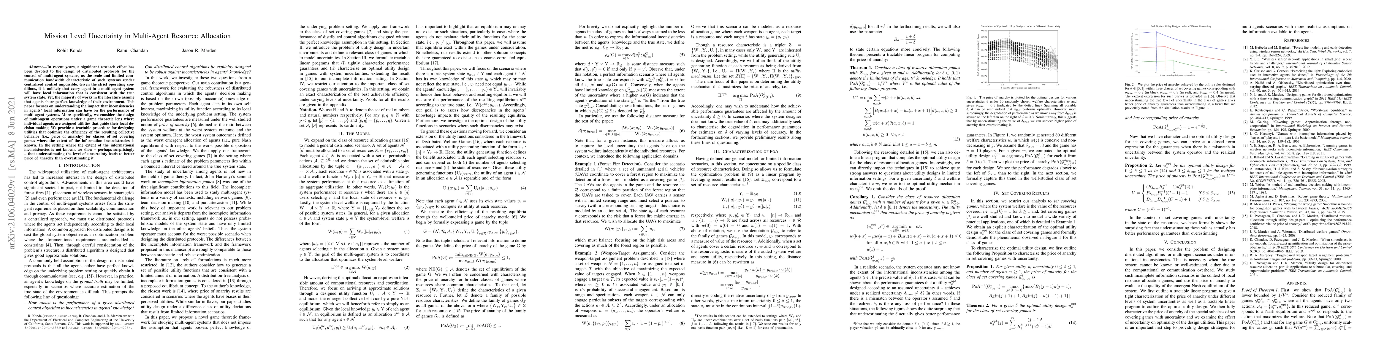This paper investigates the impact of local information inconsistencies among agents in multi-agent systems on resource allocation efficiency. It proposes a game-theoretic approach to design utilities that optimize collective behavior under known uncertainty levels, and surprisingly finds that underestimating uncertainty can yield better outcomes.