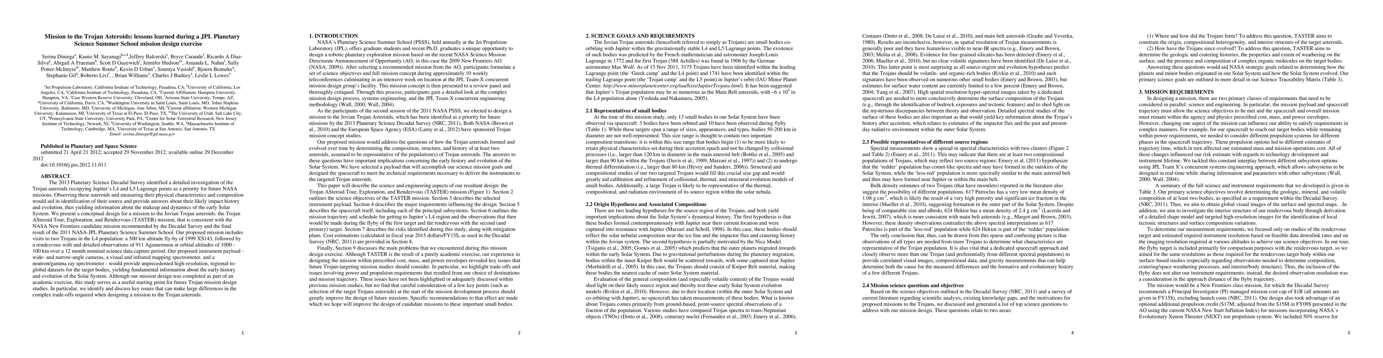 The paper proposes the TASTER mission to explore Jupiter's Trojan asteroids, focusing on 1999 XS143 and 911 Agamemnon. The mission design, developed during a Planetary Science Summer School exercise, includes instruments for high-resolution imaging and spectroscopy. It aims to provide insights into the early Solar System's history and evolution, highlighting key design considerations for future Trojan missions.