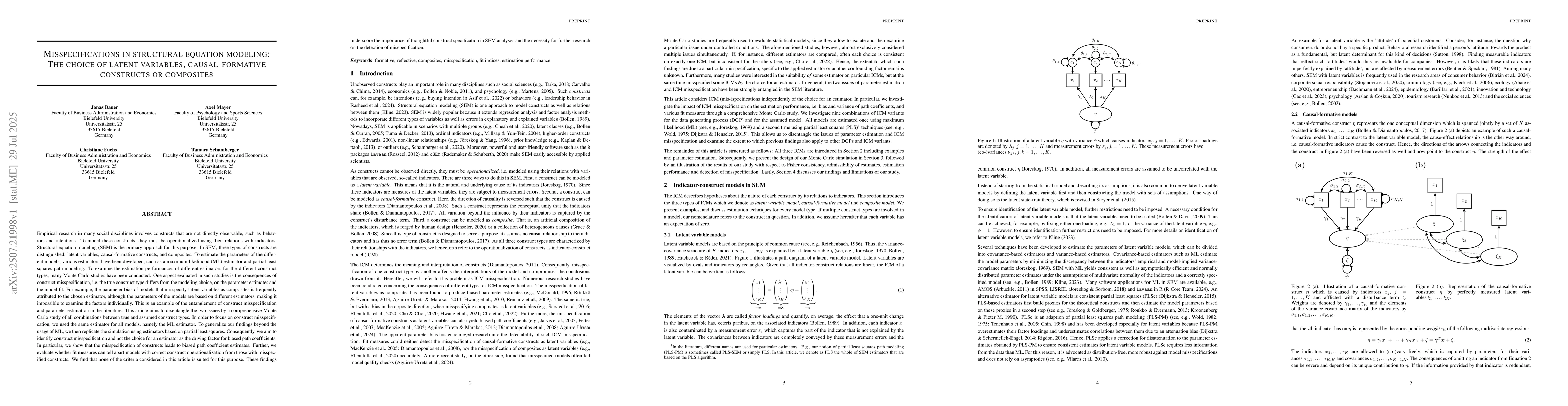 Empirical research in many social disciplines involves constructs that are not directly observable, such as behaviors. To model them, constructs must be operationalized using their relations with indicators. Structural equation modeling (SEM) is the primary approach for this purpose. In SEM, three types of constructs are distinguished: latent variables, causal-formative constructs, and composites. To estimate the parameters of the different models, various estimators have been developed. Many Monte Carlo studies have examined the estimation performances of different estimators for the construct types. One aspect evaluated is the consequences of construct misspecification - when the true construct type differs from the modeling choice - on parameter estimates and model fit. For example, parameter bias in models that misspecify latent variables as composites is often attributed to the chosen estimator, although model parameters depend on different estimators, making it impossible to examine the factors individually. This article aims to disentangle the issues of construct misspecification and parameter estimation by a comprehensive Monte Carlo study of all combinations between true and assumed construct types. To focus on misspecification, we used the same estimator for all models, namely the maximum likelihood (ML) estimator. To generalize beyond ML, we replicated the simulation using another estimator. We aim to examine the role of construct misspecification, not estimator choice, on the estimation performance and show that misspecification leads indeed to biased path coefficient estimates. Further, we evaluate whether fit measures can distinguish models with correct from those with misspecified constructs. We find that none of the criteria considered is suited for this. These findings stress the importance of thoughtful construct specification and the need for further research.