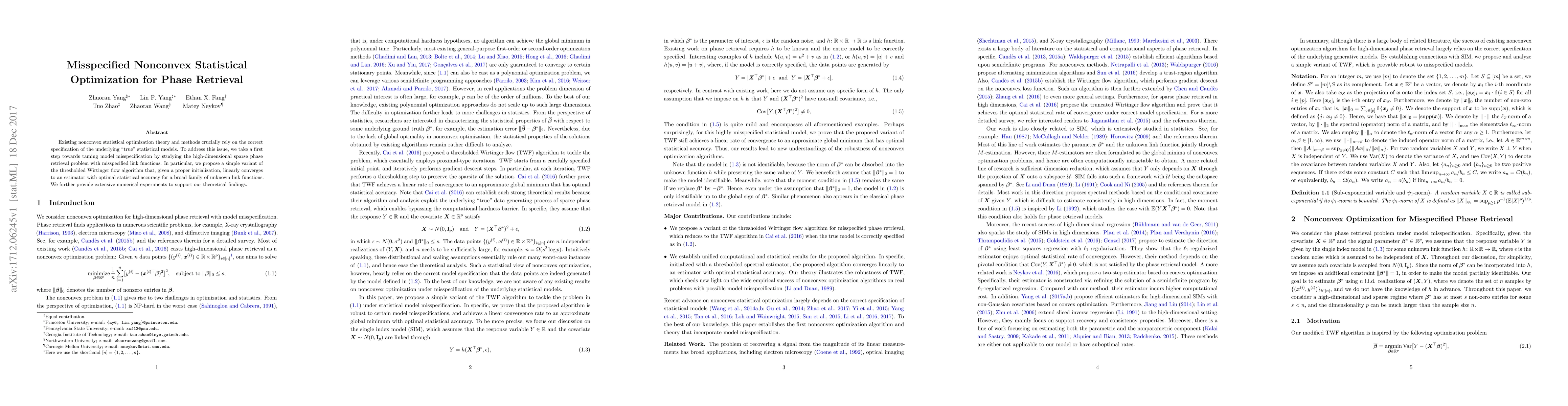 Researchers propose a new algorithm for phase retrieval that can handle misspecified models, achieving optimal statistical accuracy with proper initialization.