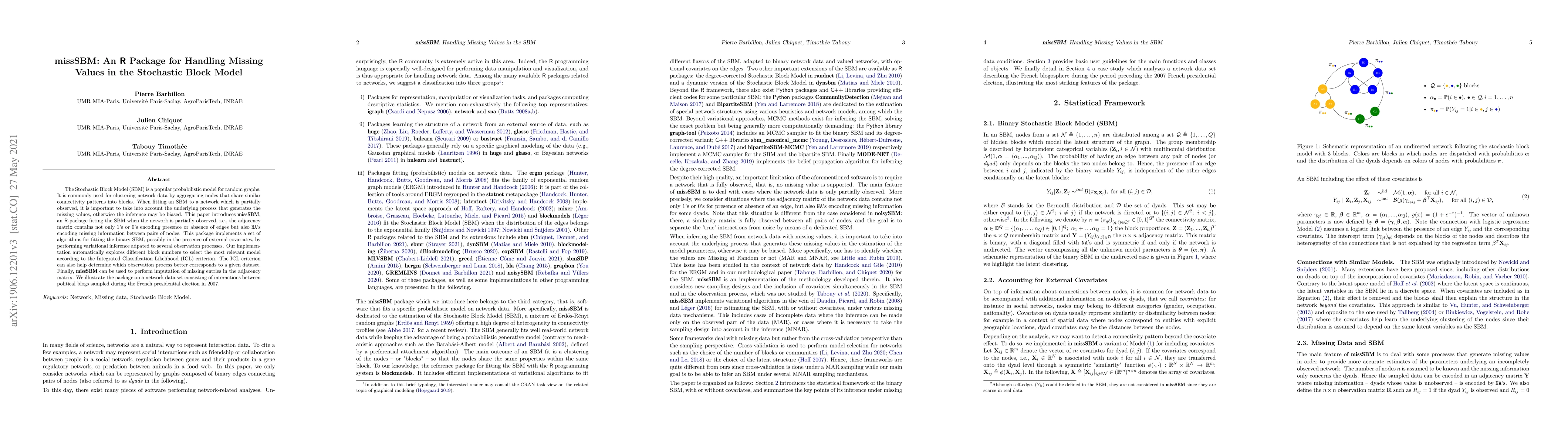 The paper introduces missSBM, an R-package for fitting Stochastic Block Models to partially observed networks, addressing missing data through variational inference and imputation. It uses the Integrated Classification Likelihood criterion to select the best model and observation process.