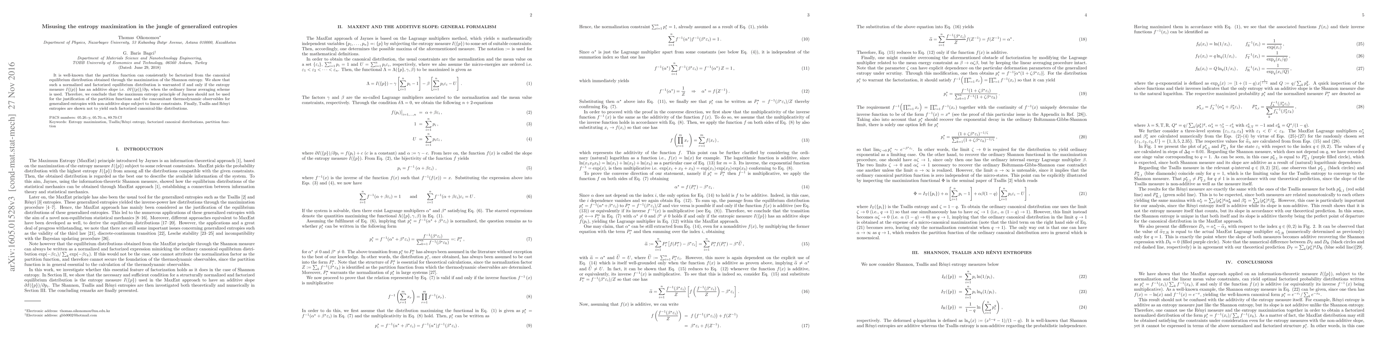 This paper argues that the maximum entropy principle is valid only for entropies with additive slopes, demonstrating that generalized entropies like Tsallis and Rényi do not yield factorized canonical distributions, thus invalidating their use in justifying partition functions and thermodynamic observables.