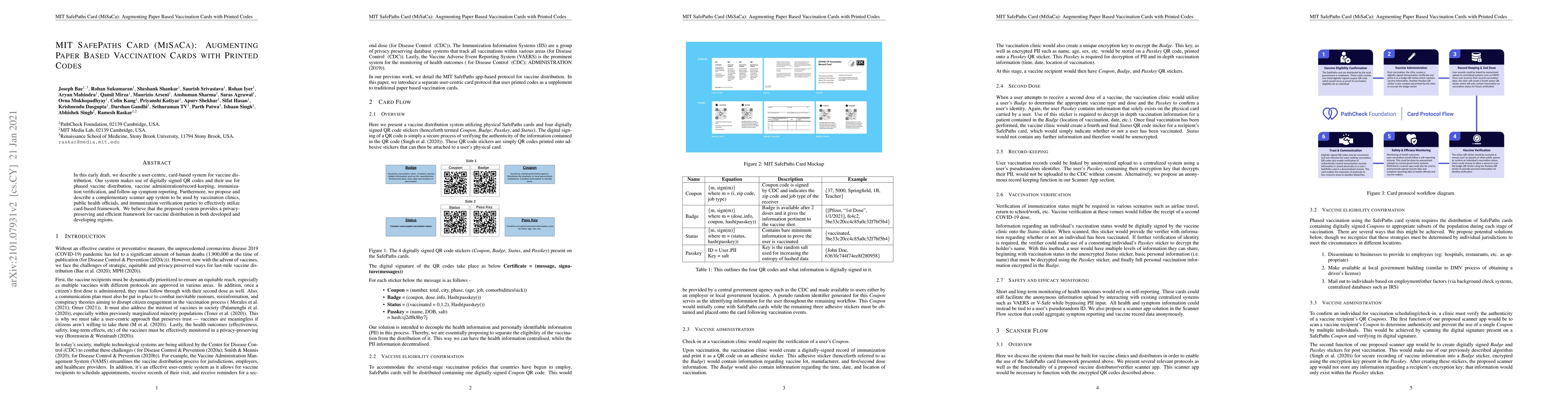 In this early draft, we describe a user-centric, card-based system for vaccine distribution. Our system makes use of digitally signed QR codes and their use for phased vaccine distribution, vaccine administration/record-keeping, immunization verification, and follow-up symptom reporting. Furthermore, we propose and describe a complementary scanner app system to be used by vaccination clinics, public health officials, and immunization verification parties to effectively utilize card-based framework. We believe that the proposed system provides a privacy-preserving and efficient framework for vaccine distribution in both developed and developing regions.