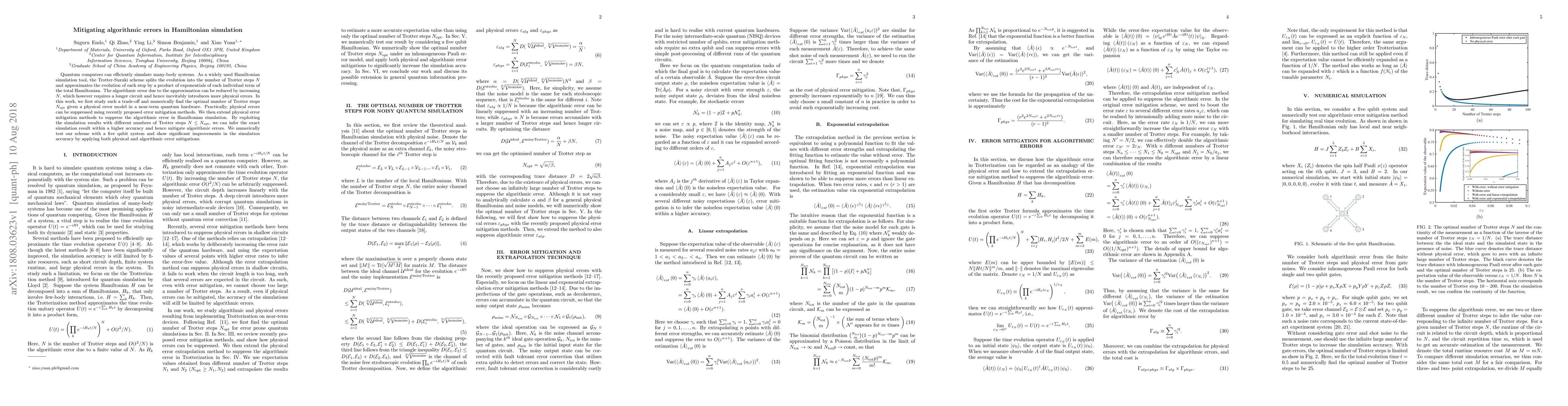 This paper investigates the trade-off between algorithmic and physical errors in Hamiltonian simulation using the Trotter-Suzuki scheme. It proposes a method to optimally determine the number of Trotter steps and applies error mitigation techniques to enhance simulation accuracy, demonstrating significant improvements in a five-qubit system.