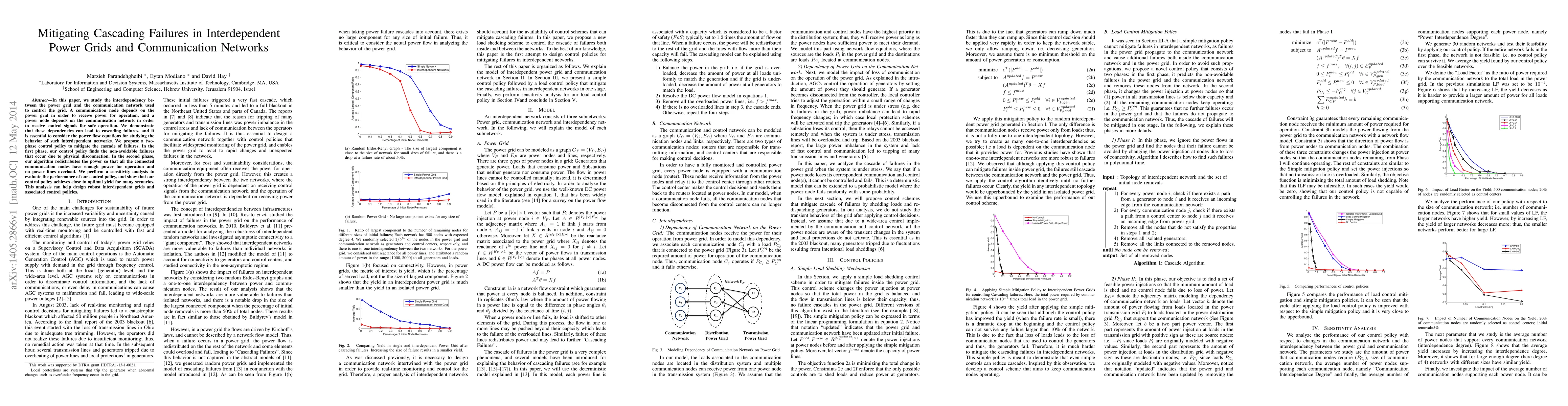This paper investigates the interdependency between power grids and communication networks, demonstrating how their mutual dependencies can lead to cascading failures. It proposes a two-phase control policy to mitigate these failures, achieving near-optimal performance and aiding in the design of robust interdependent grids.