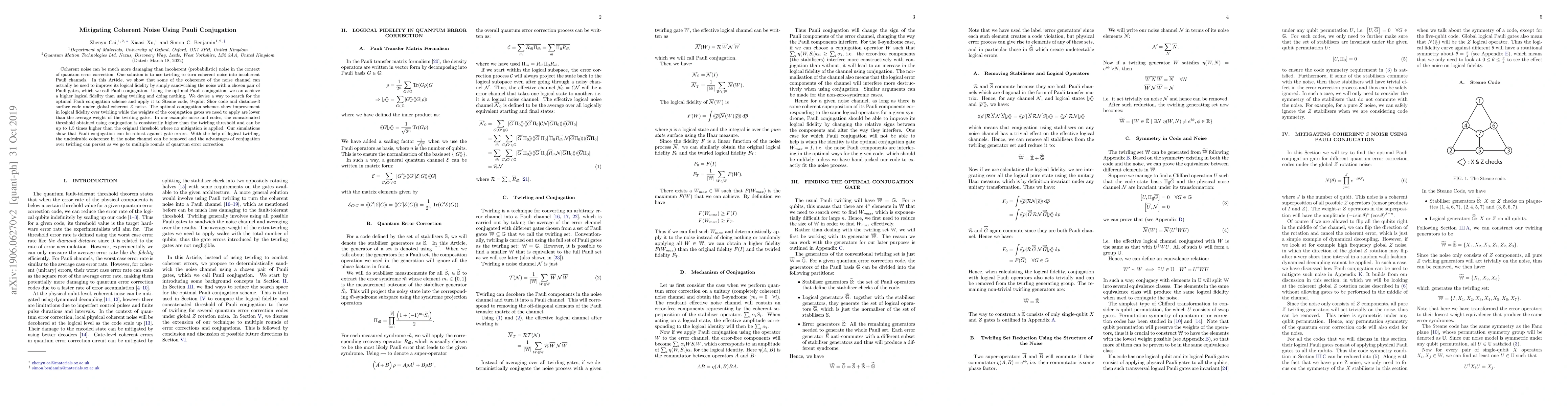 Coherent noise can be much more damaging than incoherent (probabilistic) noise in the context of quantum error correction. One solution is to use twirling to turn coherent noise into incoherent Pauli channels. In this Article, we show that some of the coherence of the noise channel can actually be used to improve its logical fidelity by simply sandwiching the noise with a chosen pair of Pauli gates, which we call Pauli conjugation. Using the optimal Pauli conjugation, we can achieve a higher logical fidelity than using twirling and doing nothing. We devise a way to search for the optimal Pauli conjugation scheme and apply it to Steane code, 9-qubit Shor code and distance-3 surface code under global coherent $Z$ noise. The optimal conjugation schemes show improvement in logical fidelity over twirling while the weights of the conjugation gates we need to apply are lower than the average weight of the twirling gates. In our example noise and codes, the concatenated threshold obtained using conjugation is consistently higher than the twirling threshold and can be up to 1.5 times higher than the original threshold where no mitigation is applied. Our simulations show that Pauli conjugation can be robust against gate errors. With the help of logical twirling, the undesirable coherence in the noise channel can be removed and the advantages of conjugation over twirling can persist as we go to multiple rounds of quantum error correction.