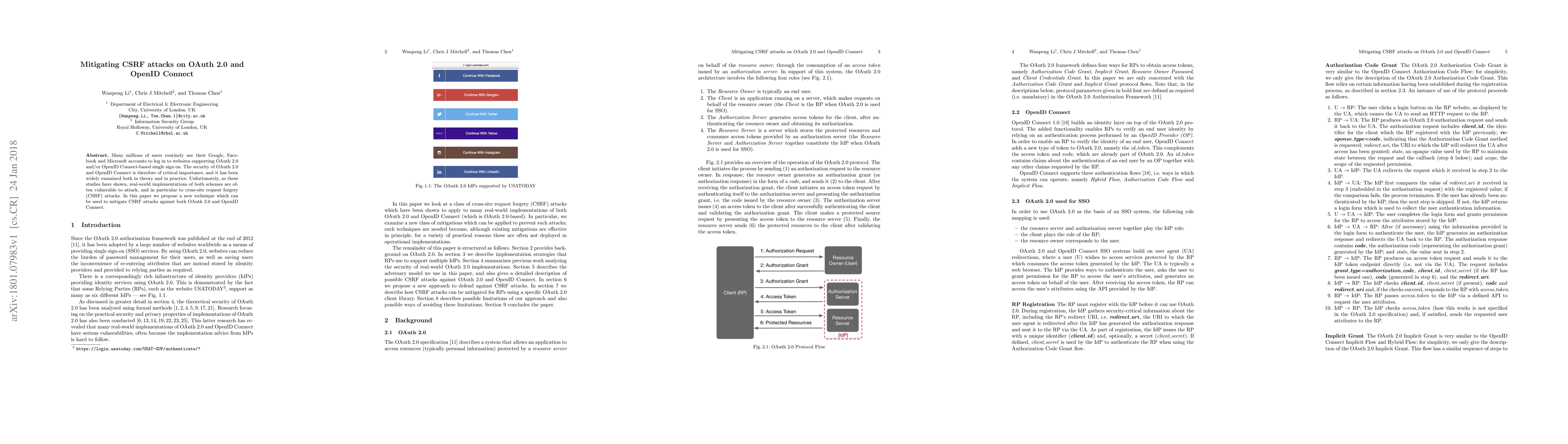 This paper proposes a novel technique to mitigate cross-site request forgery (CSRF) attacks on OAuth 2.0 and OpenID Connect, aiming to enhance the security of widely used single sign-on protocols. The proposed method seeks to address vulnerabilities in real-world implementations, safeguarding millions of users' accounts.