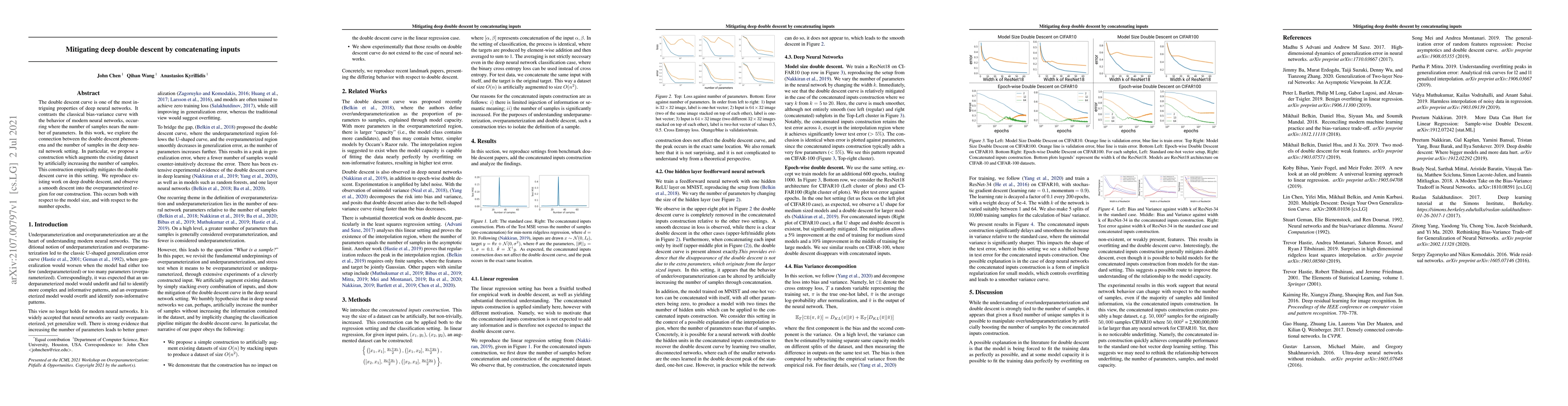 This paper investigates the double descent phenomenon in deep neural networks and proposes a method to mitigate it by concatenating inputs to artificially increase the number of samples. The study finds that this approach smooths the double descent curve, leading to a more gradual decrease in error as model size and training epochs increase.