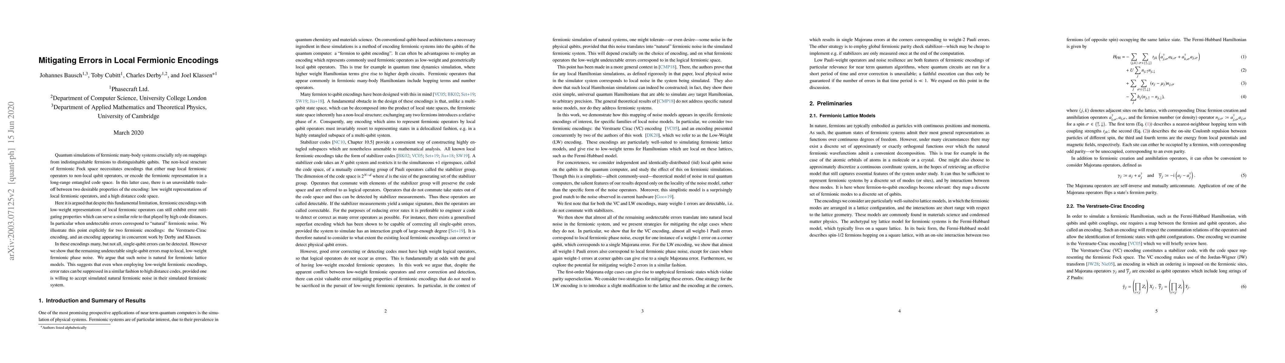 Quantum simulations of fermionic many-body systems crucially rely on mappings from indistinguishable fermions to distinguishable qubits. The non-local structure of fermionic Fock space necessitates encodings that either map local fermionic operators to non-local qubit operators, or encode the fermionic representation in a long-range entangled code space. In this latter case, there is an unavoidable trade-off between two desirable properties of the encoding: low weight representations of local fermionic operators, and a high distance code space. Here it is argued that despite this fundamental limitation, fermionic encodings with low-weight representations of local fermionic operators can still exhibit error mitigating properties which can serve a similar role to that played by high code distances. In particular when undetectable errors correspond to "natural" fermionic noise. We illustrate this point explicitly for two fermionic encodings: the Verstraete-Cirac encoding, and an encoding appearing in concurrent work by Derby and Klassen. In these encodings many, but not all, single-qubit errors can be detected. However we show that the remaining undetectable single-qubit errors map to local, low-weight fermionic phase noise. We argue that such noise is natural for fermionic lattice models. This suggests that even when employing low-weight fermionic encodings, error rates can be suppressed in a similar fashion to high distance codes, provided one is willing to accept simulated natural fermionic noise in their simulated fermionic system.