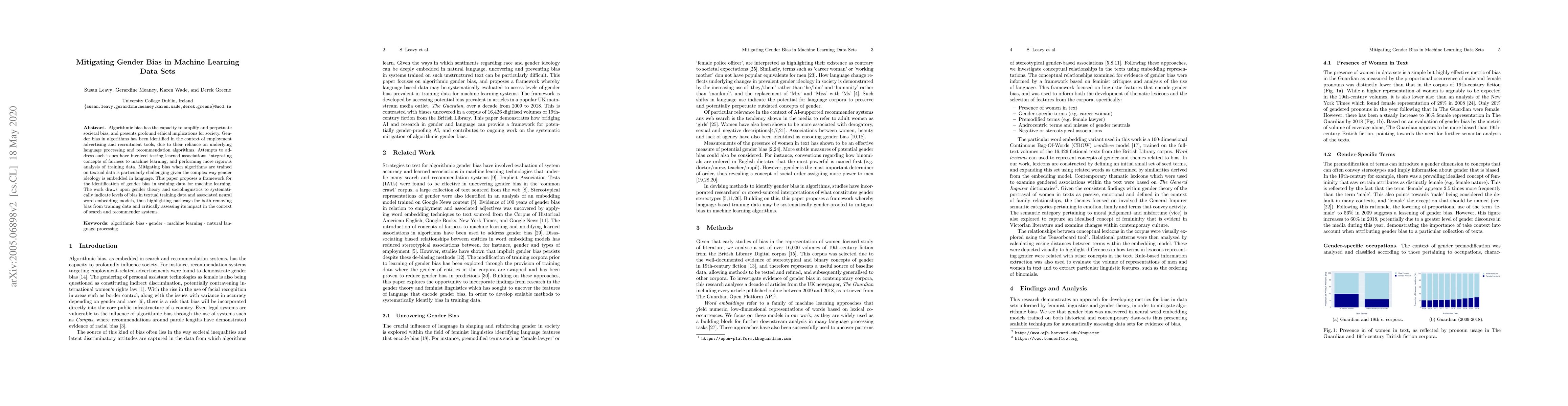 This paper proposes a framework to identify and mitigate gender bias in machine learning datasets, leveraging gender theory and sociolinguistics to analyze textual training data and neural word embeddings, aiming to remove bias and assess its impact on algorithms.