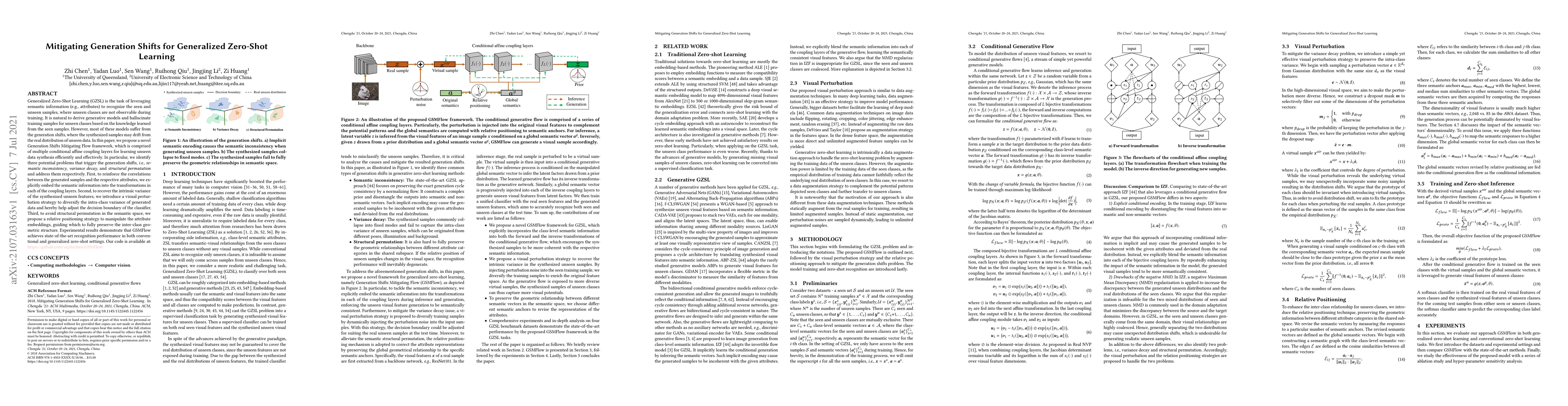 This paper proposes a novel framework called GSMFlow to mitigate generation shifts in zero-shot learning, achieving state-of-the-art recognition performance in both conventional and generalized settings.