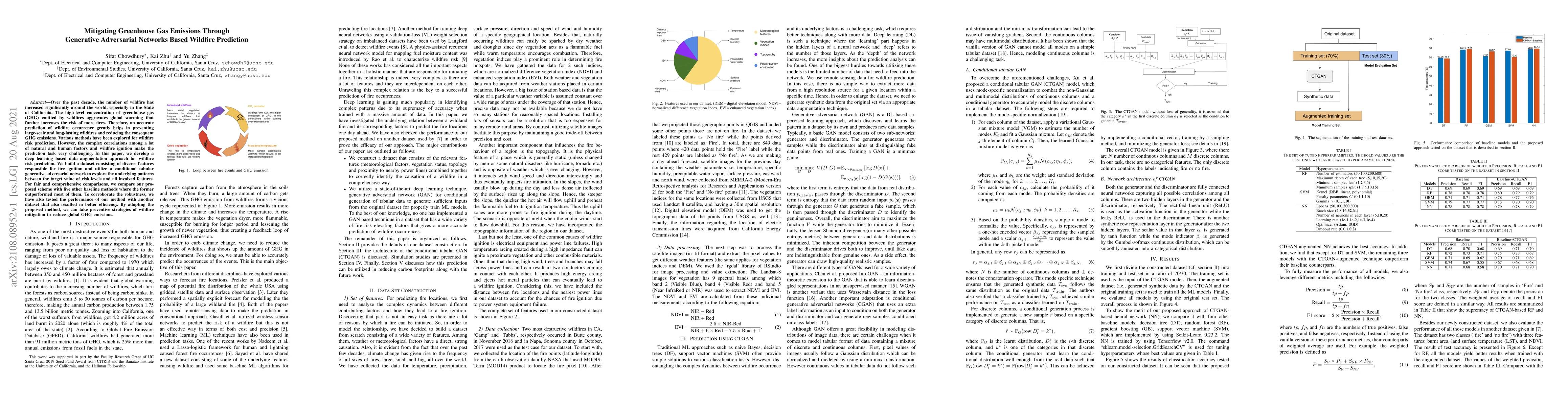 This paper proposes a deep learning approach using generative adversarial networks (GANs) to predict wildfire risk, aiming to mitigate greenhouse gas emissions. The method outperforms other baselines in predicting wildfire ignition based on complex natural and human factors.
