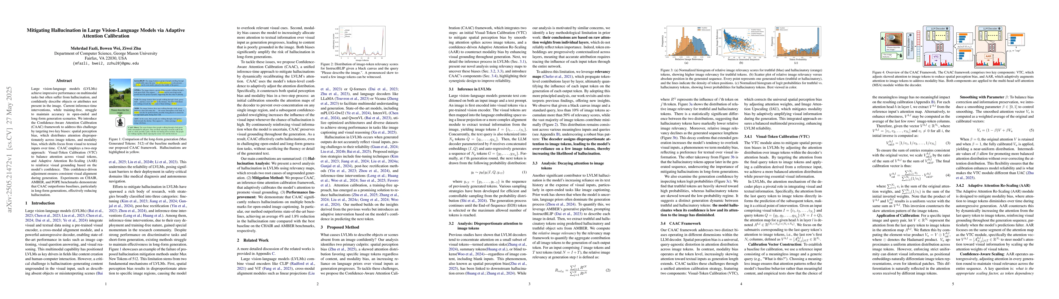 Researchers developed a new method to reduce hallucination in large vision-language models, called Confidence-Aware Attention Calibration, which improves performance on long-form generation tasks.