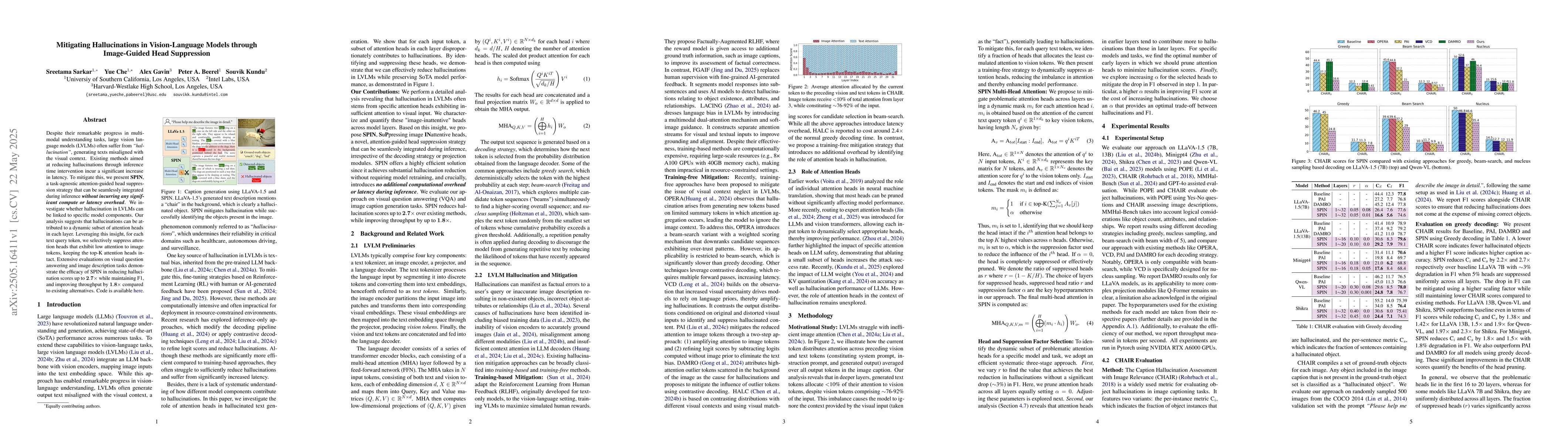 Researchers developed SPIN, a method to reduce hallucinations in vision-language models without increasing latency, by selectively suppressing attention heads that show low attention to image tokens.