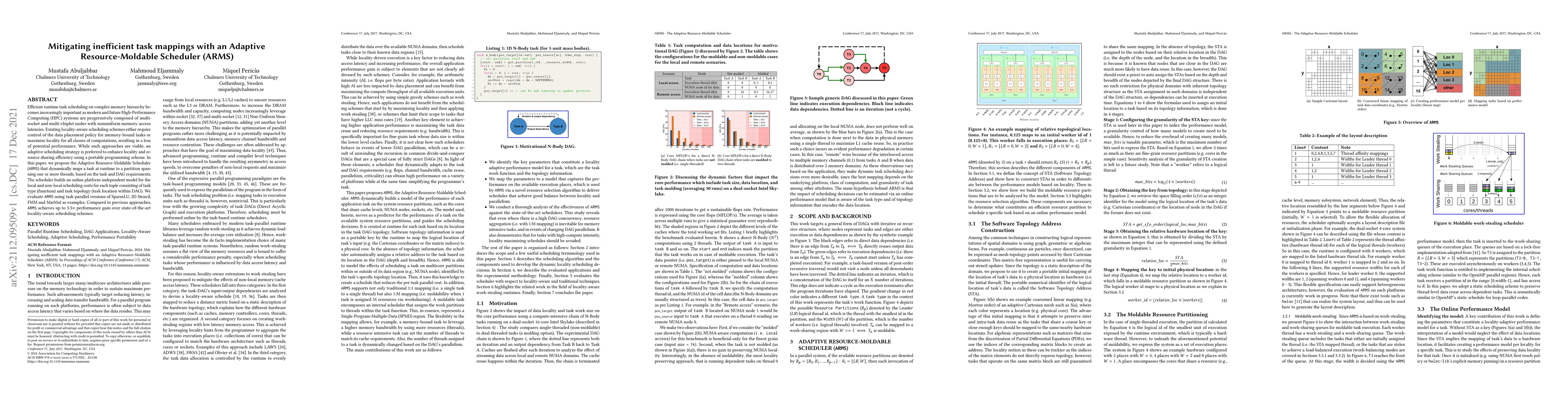 The paper proposes the Adaptive Resource-Moldable Scheduler (ARMS) to dynamically optimize task mappings in HPC systems, achieving up to 3.5x performance gains over existing locality-aware scheduling methods by enhancing locality and resource sharing efficiency. ARMS builds an online model to determine the best task-thread mapping based on runtime conditions and task requirements.