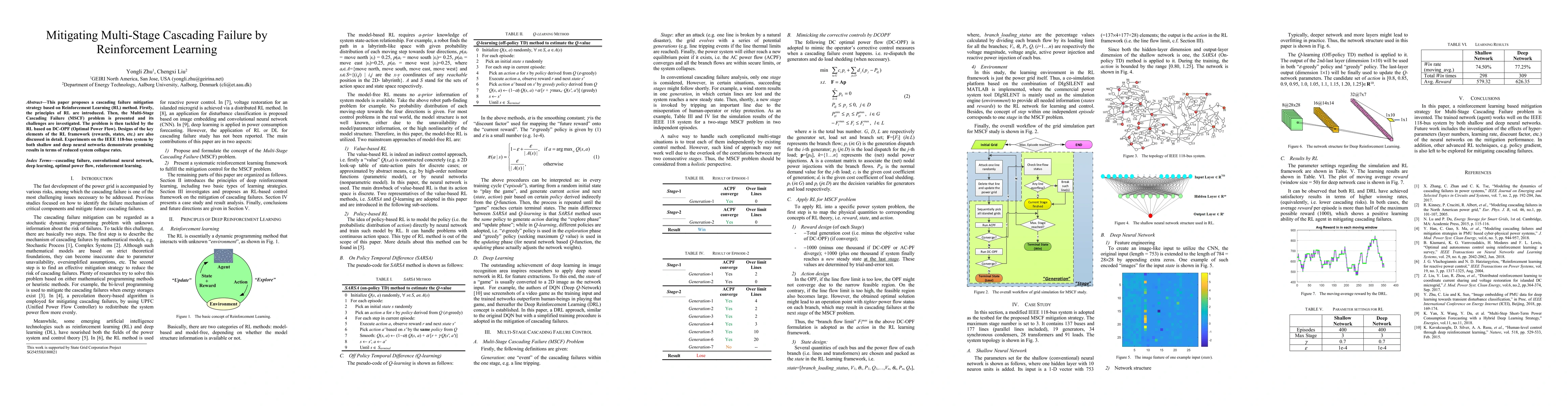 This paper introduces a Reinforcement Learning (RL) approach to mitigate Multi-Stage Cascading Failure (MSCF) in power grids, utilizing RL-based DC-OPF. Experiments on the IEEE 118-bus system show significant reductions in system collapse rates, indicating the effectiveness of the proposed strategy.