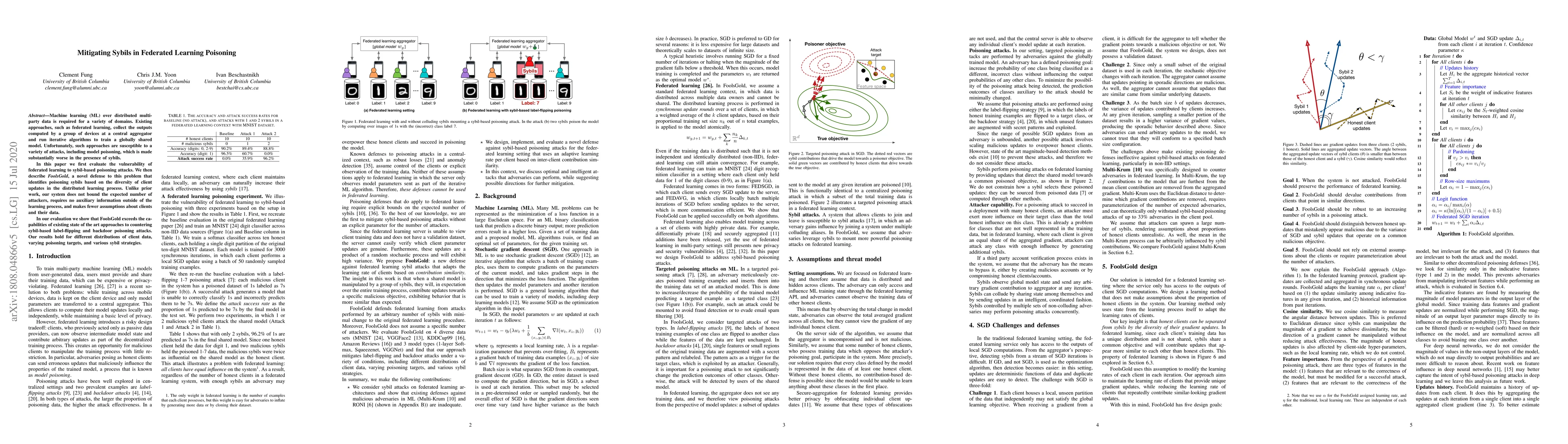 This paper evaluates the vulnerability of federated learning to sybil-based poisoning attacks and introduces FoolsGold, a novel defense mechanism that identifies sybils by analyzing the diversity of client updates. FoolsGold outperforms existing defenses and requires no additional information beyond the learning process.
