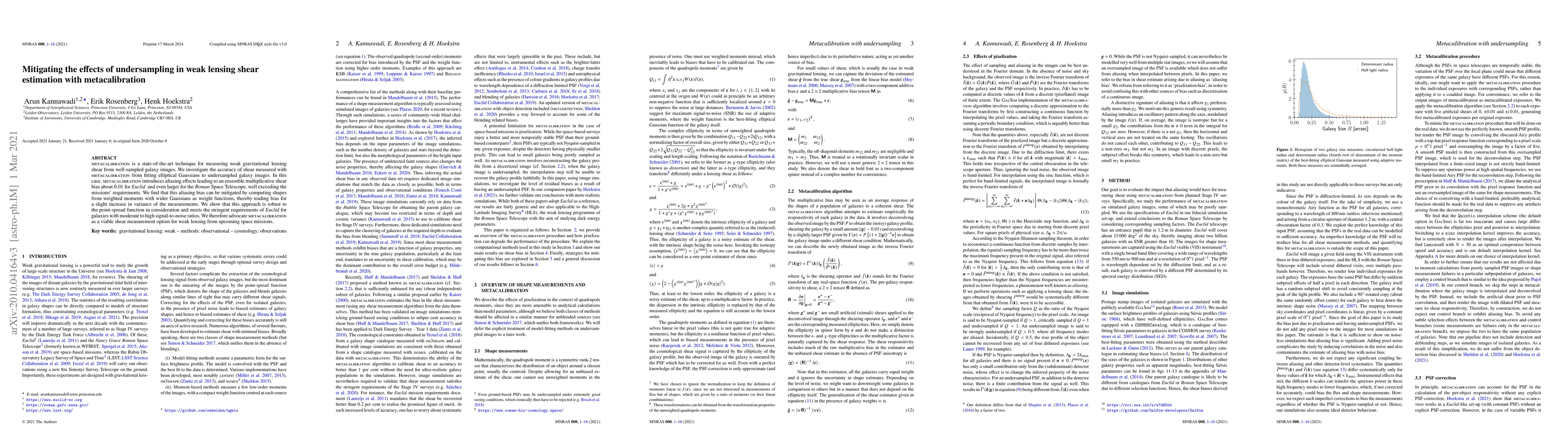 This paper investigates the accuracy of metacalibration for measuring weak gravitational lensing shear from undersampled galaxy images, finding that it introduces significant aliasing bias. The authors propose using weighted moments with wider Gaussians to mitigate this bias, demonstrating that the method meets the stringent requirements of upcoming space missions like Euclid.
