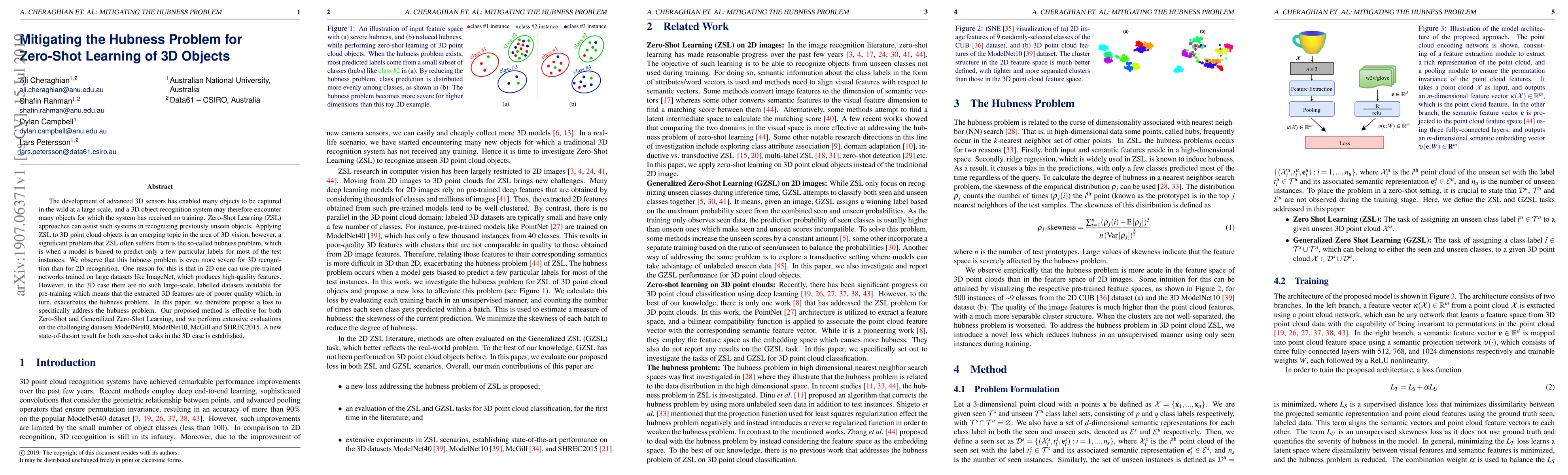 This paper proposes a new loss function designed to mitigate the hubness problem in Zero-Shot Learning for 3D object recognition, addressing the challenge of poor feature quality in 3D data compared to 2D. The method achieves state-of-the-art results on several datasets, demonstrating effectiveness for both Zero-Shot and Generalized Zero-Shot Learning.