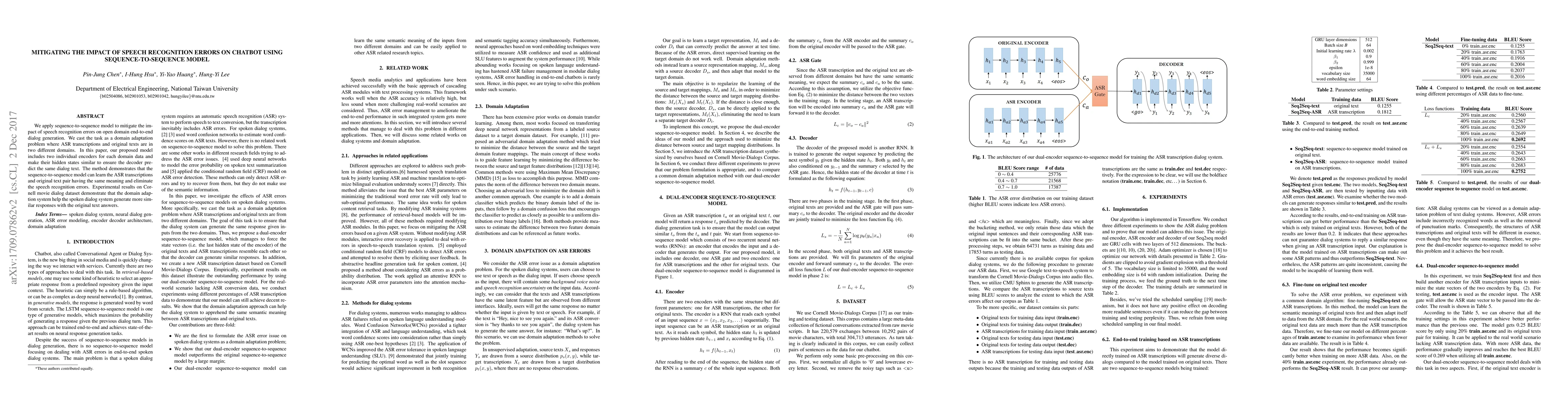 This paper proposes a sequence-to-sequence model to reduce the impact of speech recognition errors on chatbots by adapting domains of ASR transcriptions and original text. The model aligns encoder hidden states to ensure the decoder generates similar dialog responses, demonstrating improved response accuracy on the Cornell movie dialog dataset.