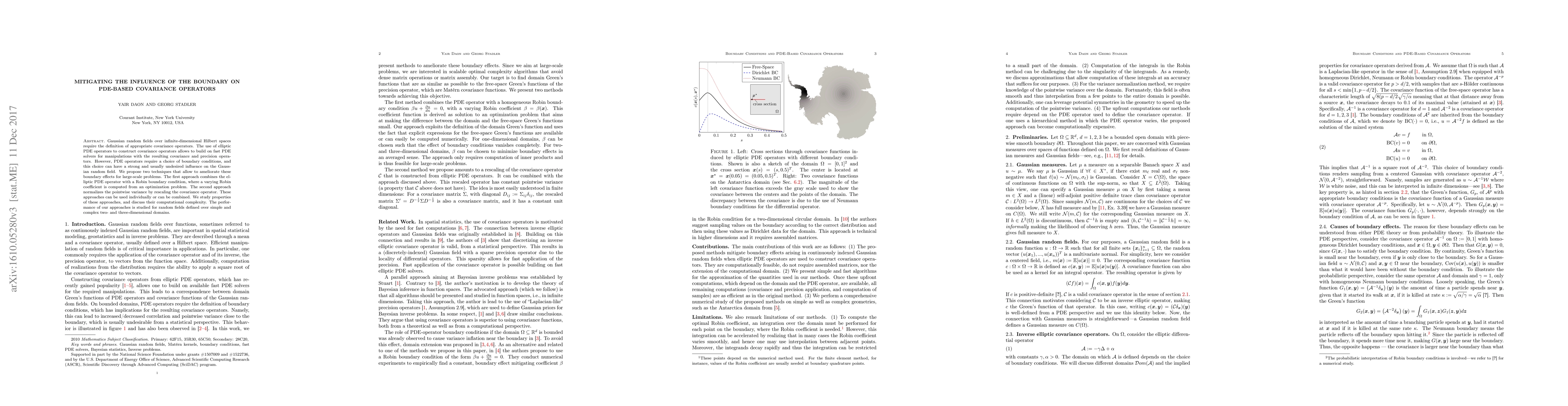 This paper proposes two techniques to mitigate the influence of boundary conditions on PDE-based covariance operators for Gaussian random fields. The first technique uses a Robin boundary condition with a varying coefficient optimized via an optimization problem, while the second normalizes pointwise variance by rescaling the covariance operator. Both methods are evaluated for their computational efficiency and effectiveness across various domains.