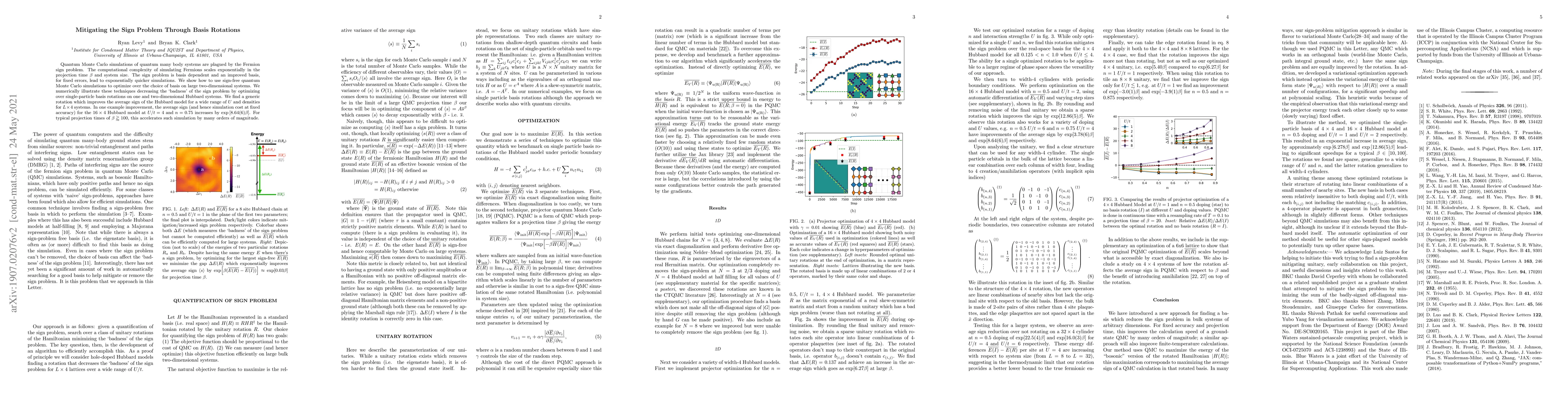 Quantum Monte Carlo simulations of quantum many body systems are plagued by the Fermion sign problem. The computational complexity of simulating Fermions scales exponentially in the projection time $\beta$ and system size. The sign problem is basis dependent and an improved basis, for fixed errors, lead to exponentially quicker simulations. We show how to use sign-free quantum Monte Carlo simulations to optimize over the choice of basis on large two-dimensional systems. We numerically illustrate these techniques decreasing the `badness' of the sign problem by optimizing over single-particle basis rotations on one and two-dimensional Hubbard systems. We find a generic rotation which improves the average sign of the Hubbard model for a wide range of $U$ and densities for $L \times 4$ systems. In one example improvement, the average sign (and hence simulation cost at fixed accuracy) for the $16\times 4$ Hubbard model at $U/t=4$ and $n=0.75$ increases by $\exp\left[8.64(6)\beta\right]$. For typical projection times of $\beta\gtrapprox 100$, this accelerates such simulation by many orders of magnitude.