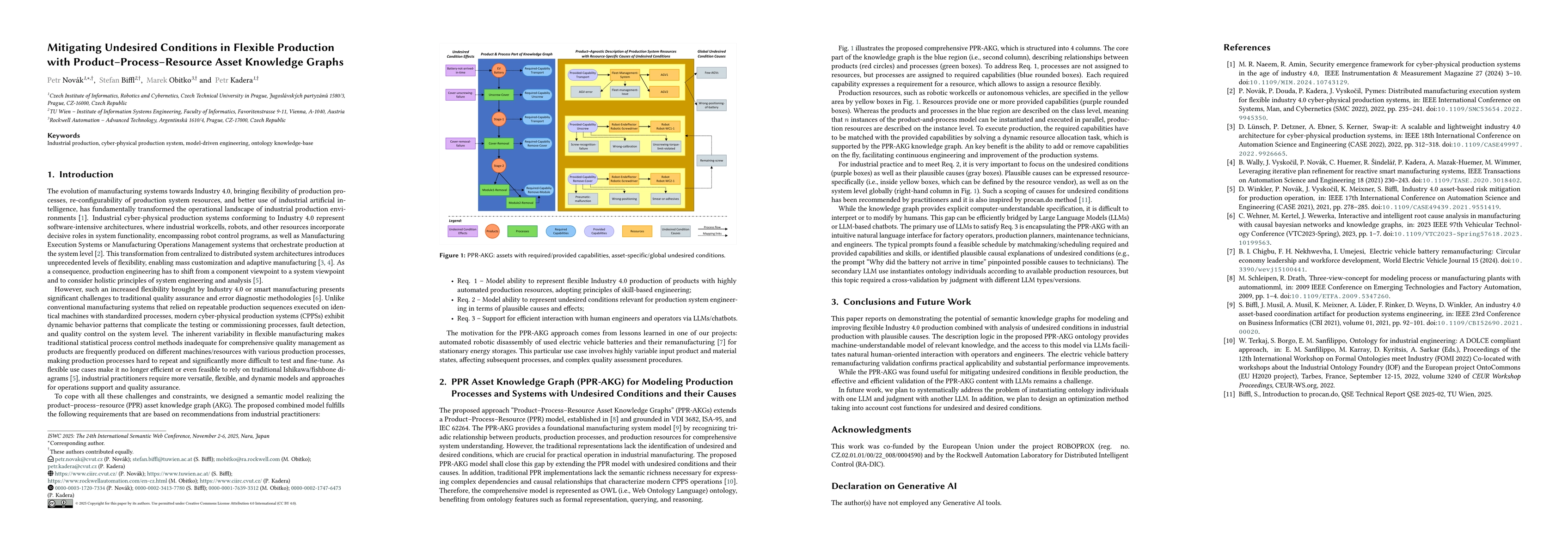 Contemporary industrial cyber-physical production systems (CPPS) composed of robotic workcells face significant challenges in the analysis of undesired conditions due to the flexibility of Industry 4.0 that disrupts traditional quality assurance mechanisms. This paper presents a novel industry-oriented semantic model called Product-Process-Resource Asset Knowledge Graph (PPR-AKG), which is designed to analyze and mitigate undesired conditions in flexible CPPS. Built on top of the well-proven Product-Process-Resource (PPR) model originating from ISA-95 and VDI-3682, a comprehensive OWL ontology addresses shortcomings of conventional model-driven engineering for CPPS, particularly inadequate undesired condition and error handling representation. The integration of semantic technologies with large language models (LLMs) provides intuitive interfaces for factory operators, production planners, and engineers to interact with the entire model using natural language. Evaluation with the use case addressing electric vehicle battery remanufacturing demonstrates that the PPR-AKG approach efficiently supports resource allocation based on explicitly represented capabilities as well as identification and mitigation of undesired conditions in production. The key contributions include (1) a holistic PPR-AKG model capturing multi-dimensional production knowledge, and (2) the useful combination of the PPR-AKG with LLM-based chatbots for human interaction.